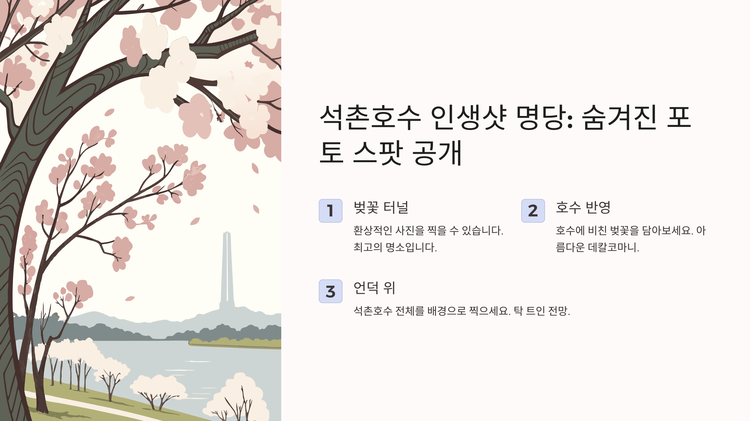 🌸 석촌호수 벚꽃구경 가이드 (최적 방문 시기, 주차 등)
