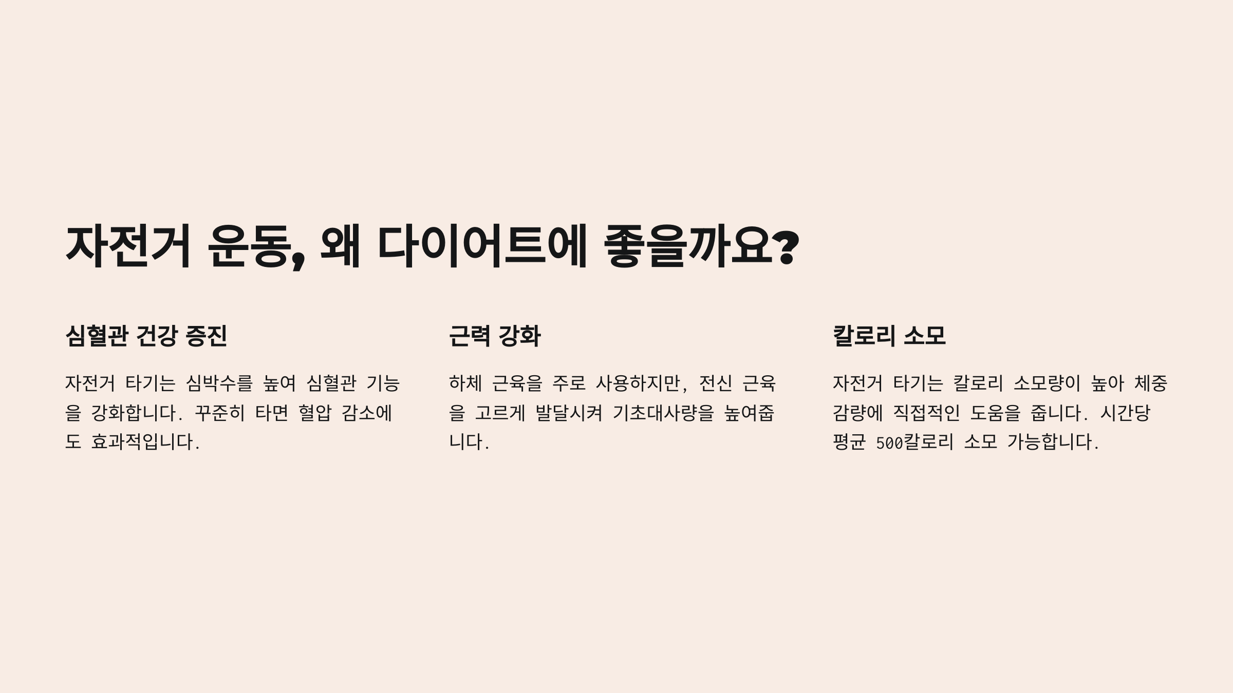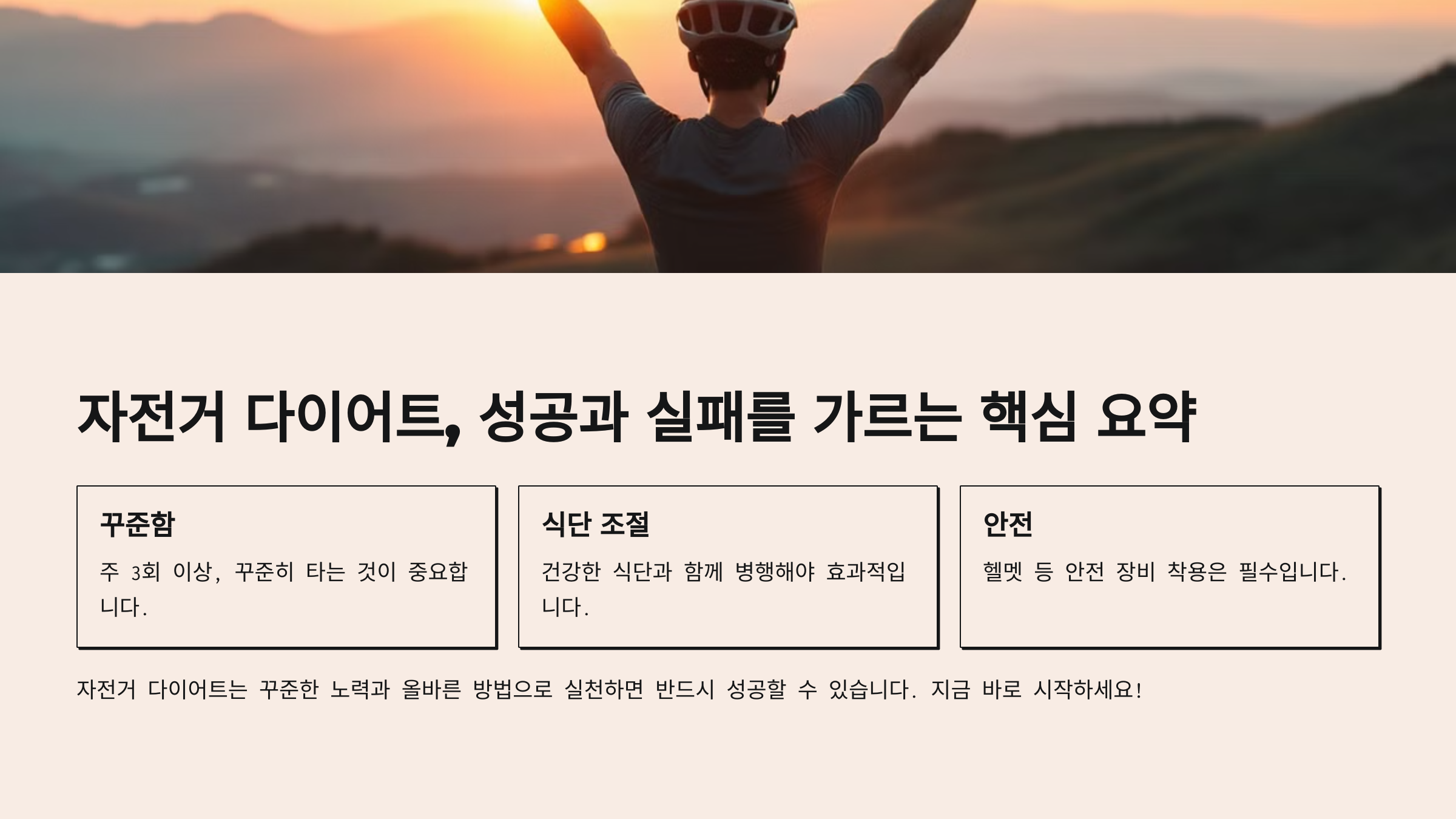 그럼 이제, 다이어트 효과를 극대화하려면 어떻게 자전거를 타야 할까요? 🤔 다음에서 알아봐요!