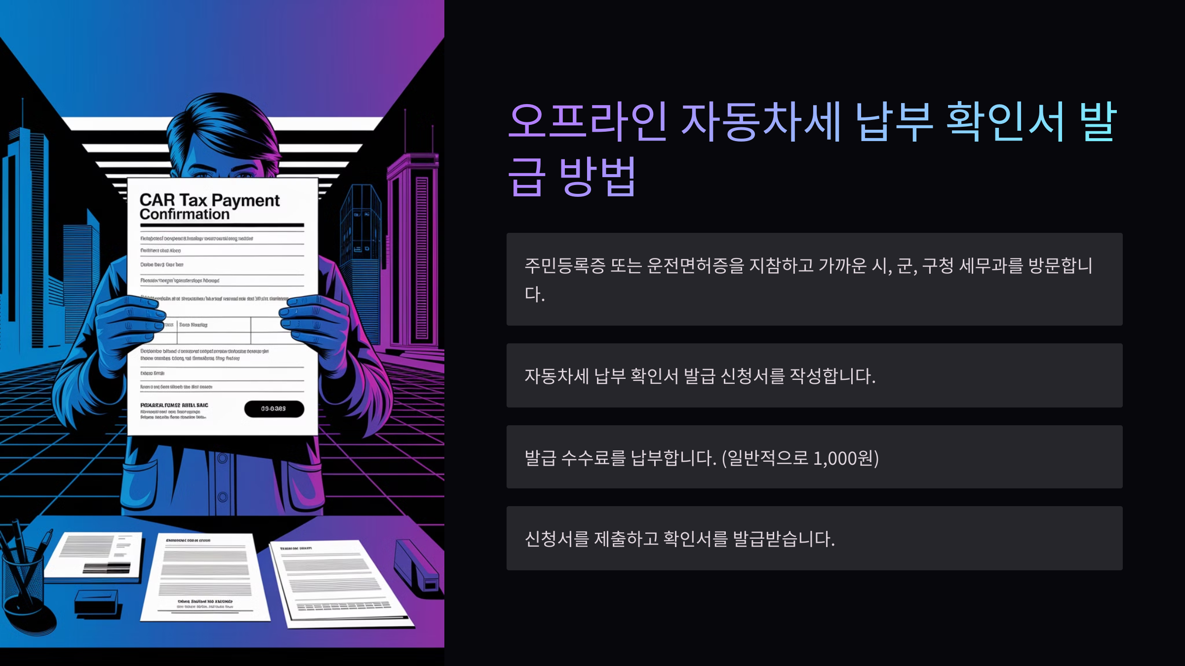 자동차세 납부 확인서는 온라인과 오프라인에서 발급받을 수 있어요. 각각의 방법을 자세히 알아볼게요!