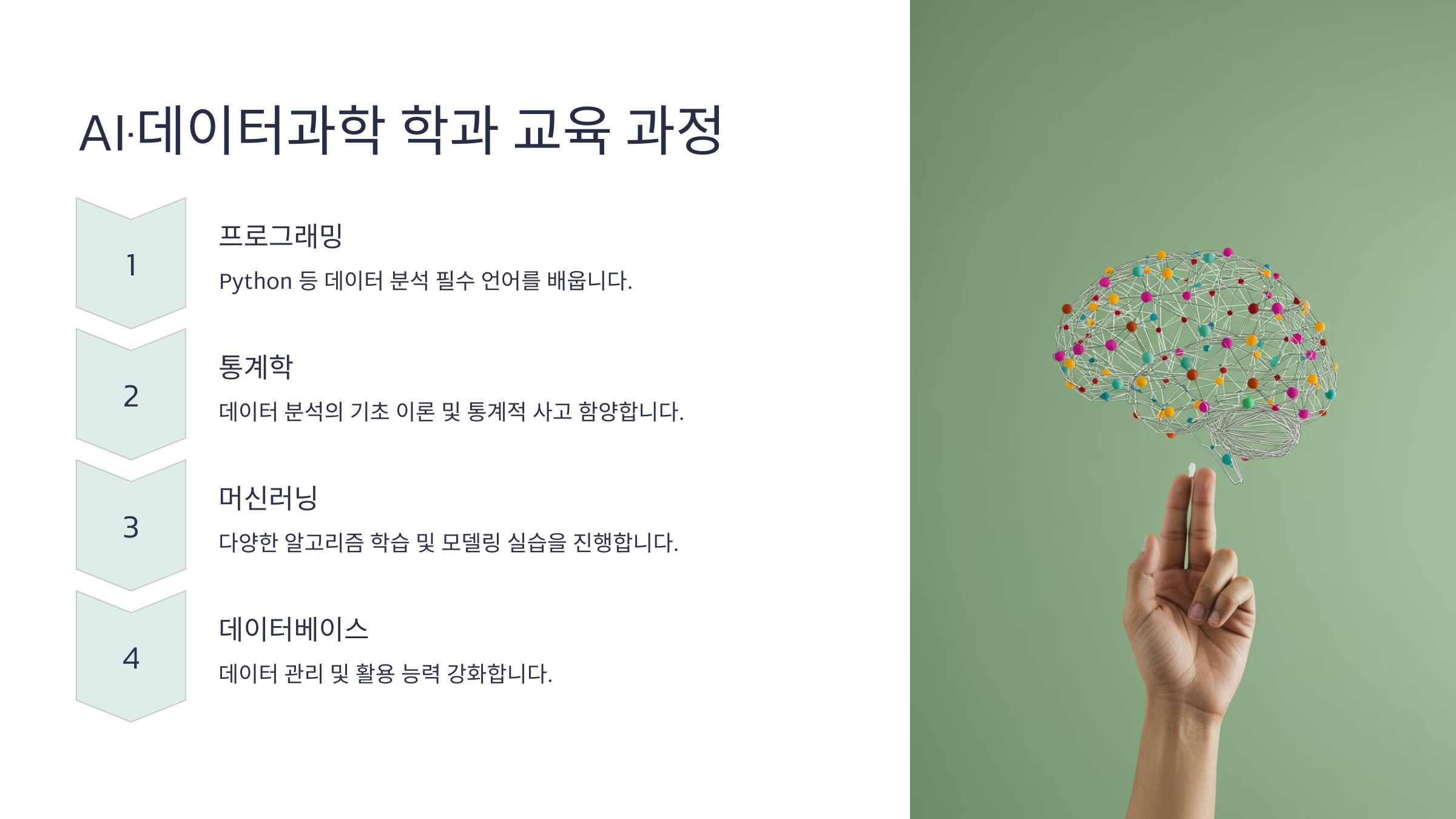 이처럼 AI·데이터과학 학과는 전 세계적으로 큰 주목을 받고 있으며, 앞으로 더욱 중요한 역할을 하게 될 거예요! 🚀