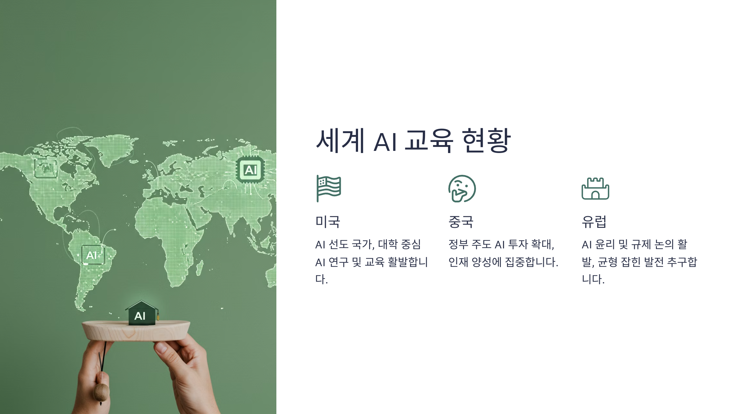 세계 각국의 AI 교육 현황을 보면, 기술 발전 속도에 발맞춰 교육 방식도 혁신되고 있다는 걸 느낄 수 있어요. 2025년에는 글로벌 AI 인재 경쟁이 더욱 치열해질 것으로 보이네요! 🚀
