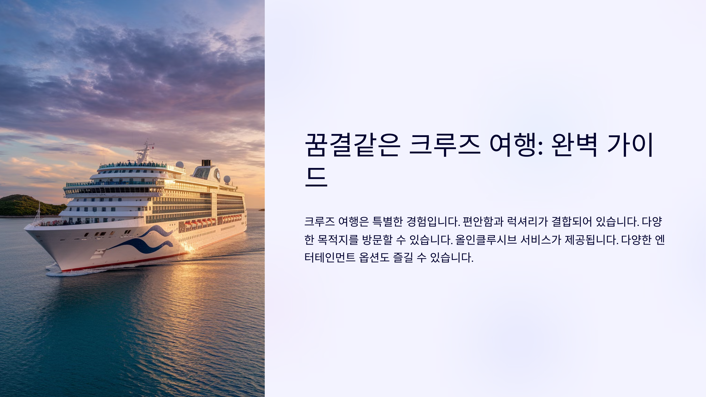 - ✔ **포함된 서비스 체크**: 일부 크루즈는 음료, 인터넷 등이 별도 요금일 수 있어요.