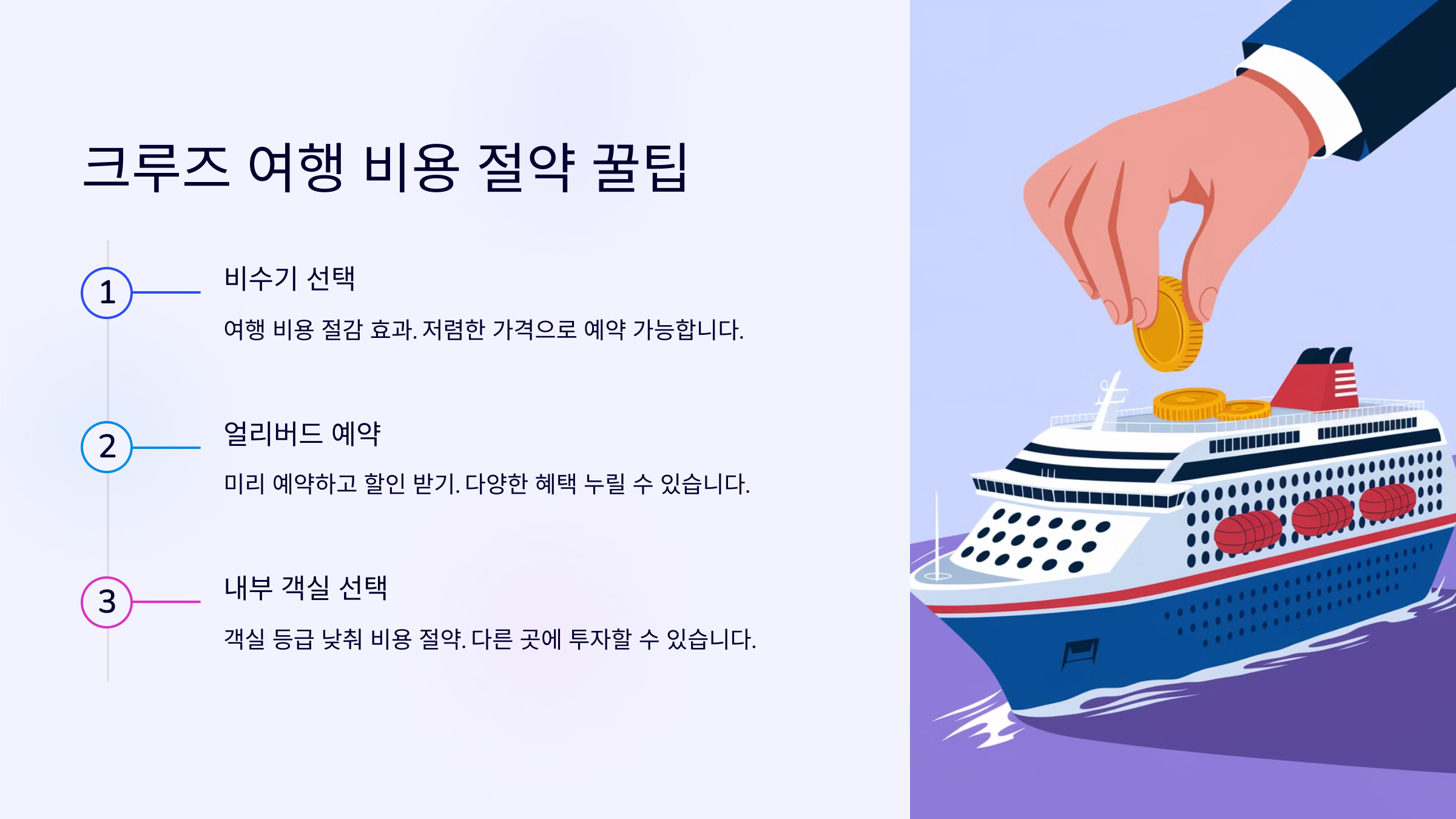 이제 크루즈 여행 비용을 줄이는 방법도 알아볼까요? 💰