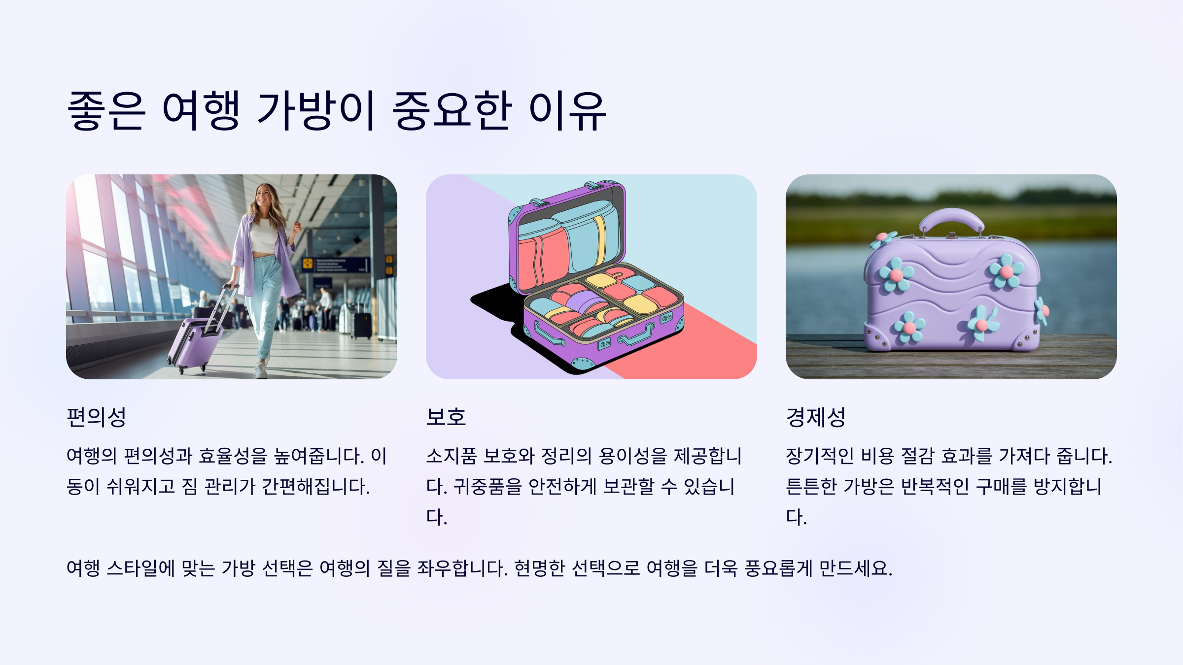 여행 가방이 불편하면 여행이 피곤해질 수밖에 없어요! **좋은 가방을 선택해야 하는 이유**를 알아볼까요? 🤔