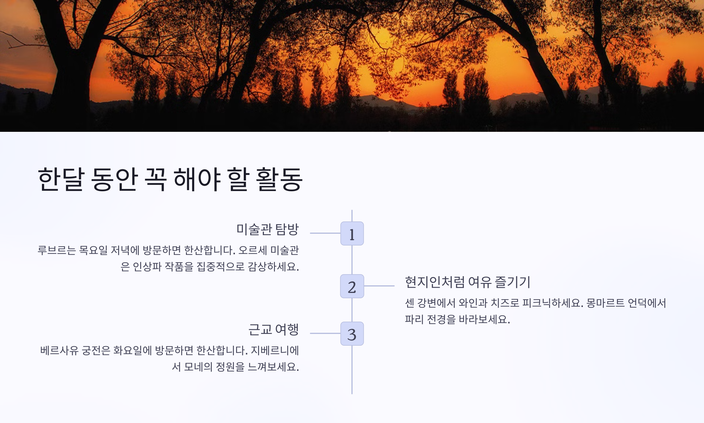 다음으로, 파리에서 한 달 동안 해야 할 특별한 활동들을 소개할게요! 🎨