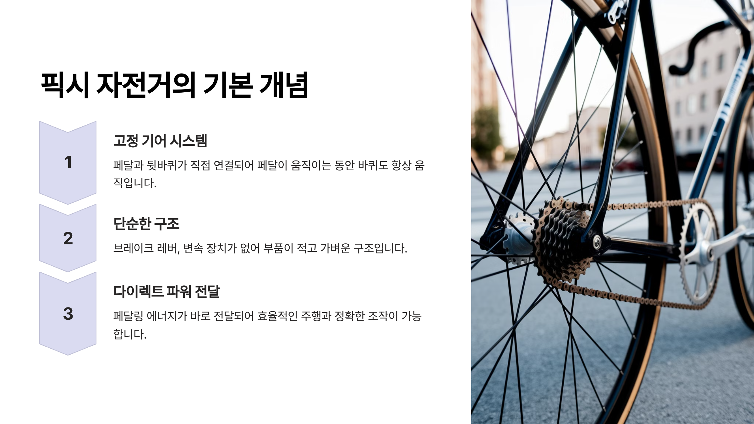 픽시 자전거는 기어가 없는 고정 기어(fixed gear) 방식의 자전거예요. 즉, 페달을 돌리는 대로 바퀴가 움직이고, 페달을 멈추면 자전거도 멈춰요. 그래서 브레이크 없이 타는 경우도 많지만, 초보자라면 반드시 브레이크를 장착하는 게 좋아요.