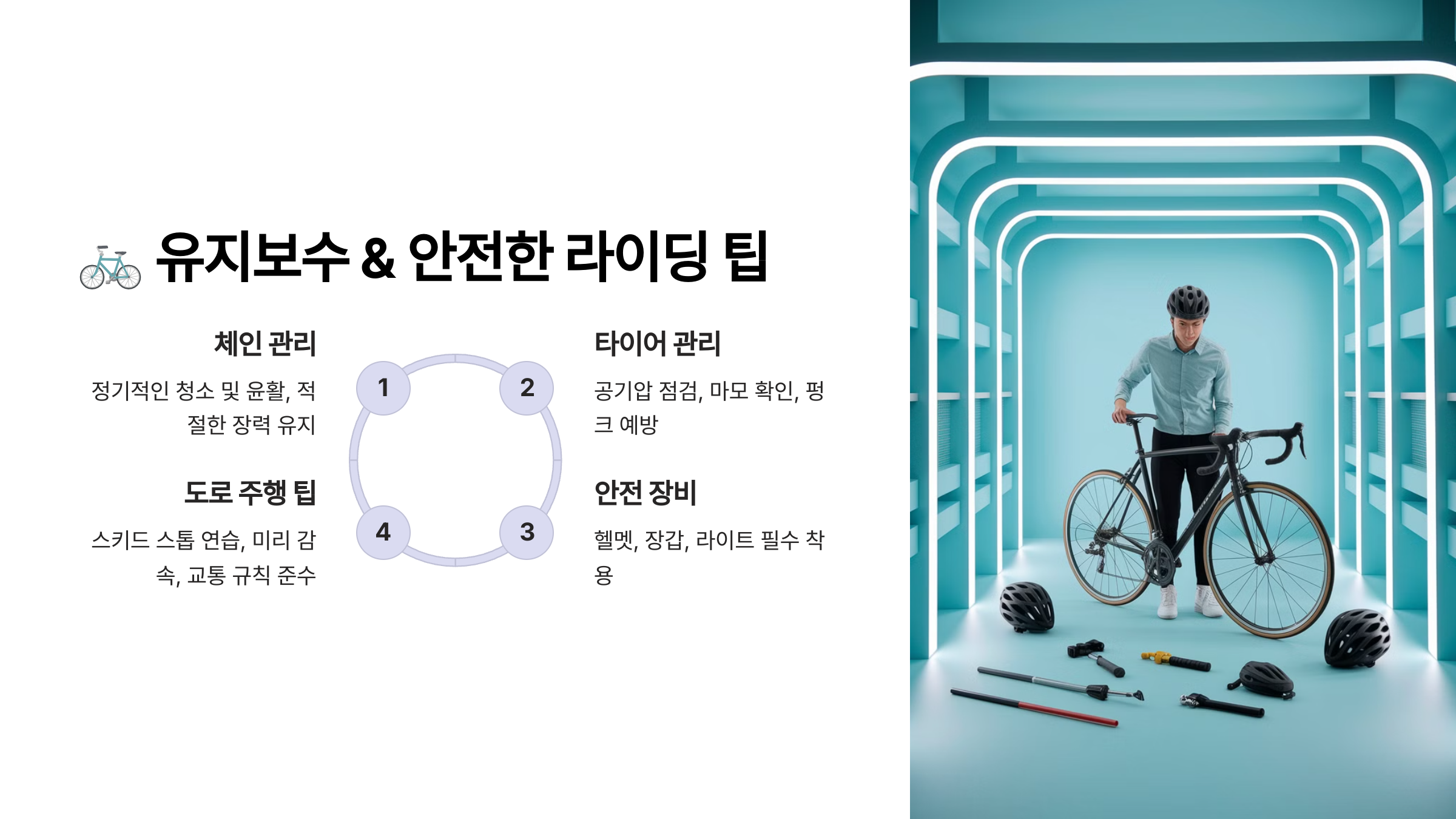 픽시 자전거는 구조가 단순하지만, **올바른 유지보수와 안전한 주행 습관**이 꼭 필요해요. 픽시는 고정 기어 방식이라 브레이크 없이 타는 경우가 많아 더 많은 주의가 필요하답니다.