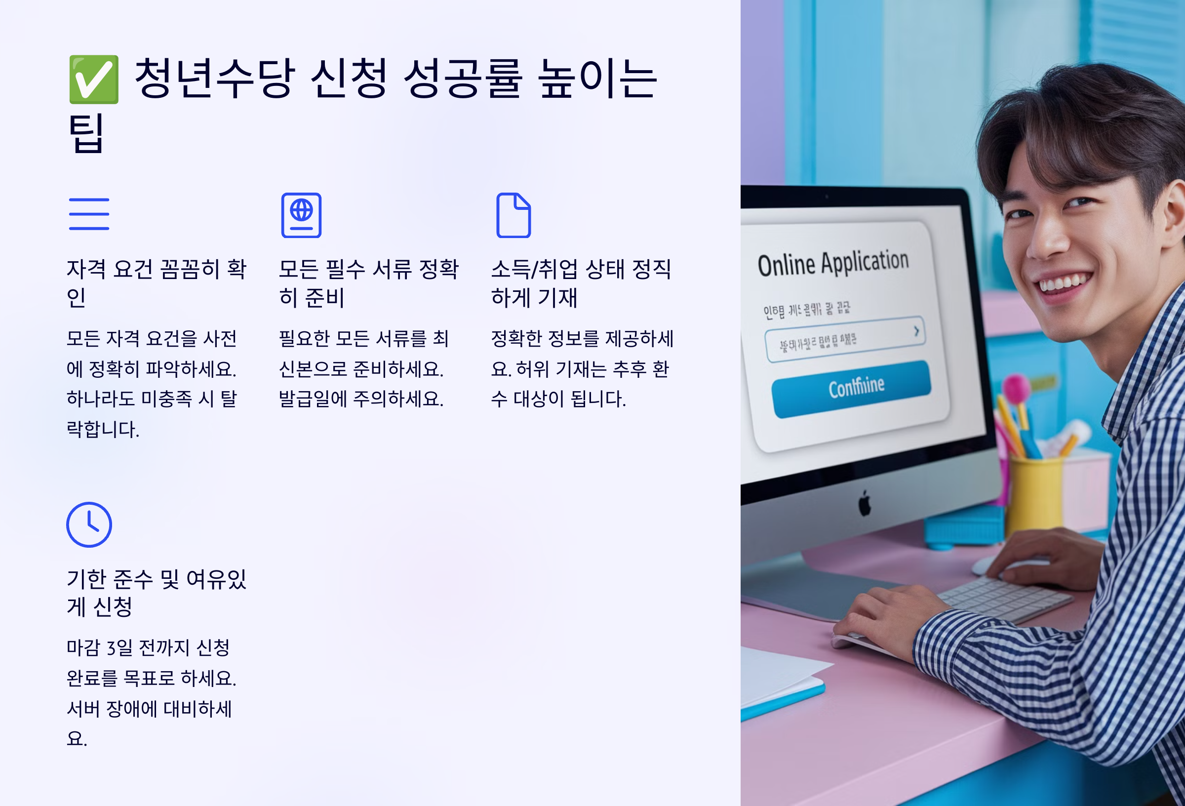 청년수당은 경쟁률이 높은 경우가 많아요. 신청에 성공하려면 몇 가지 팁을 잘 활용하는 것이 중요해요! 🚀