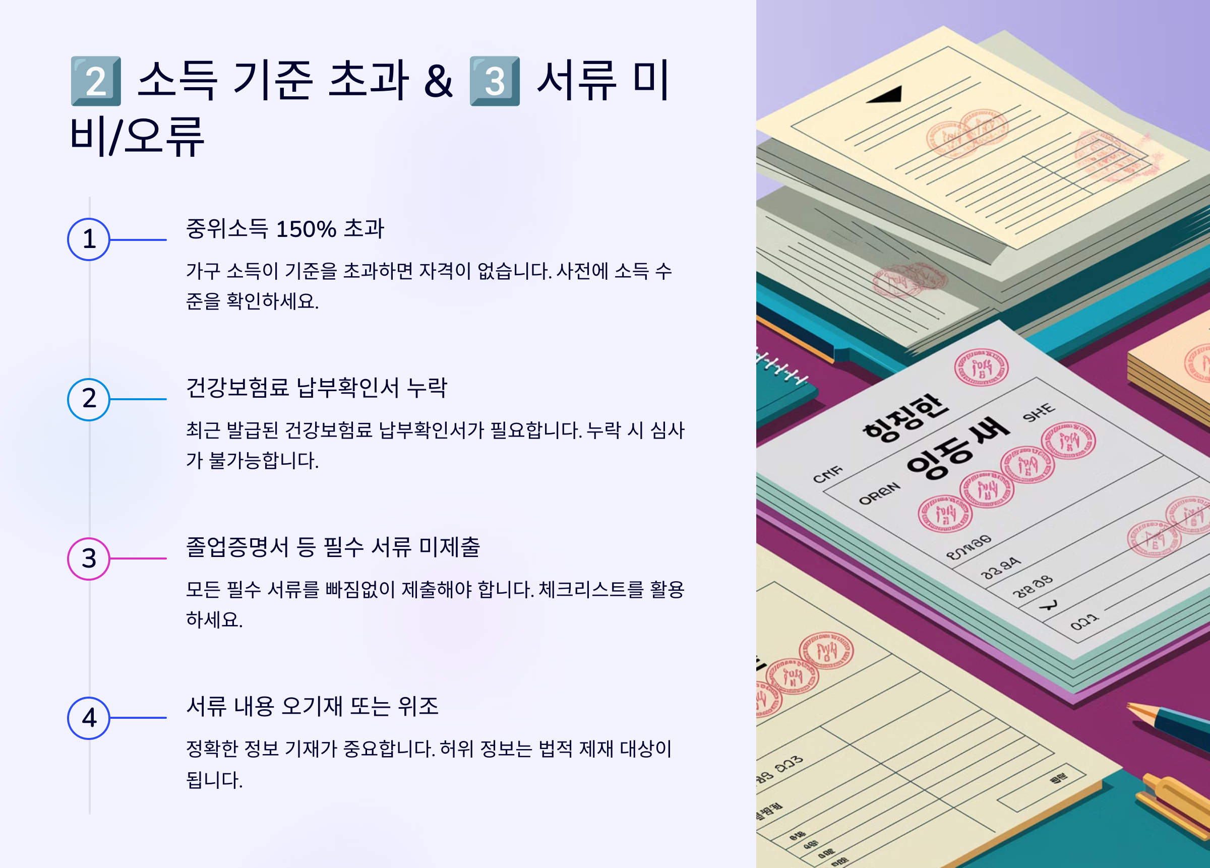 | 소득 기준 초과 | 가구 소득이 기준보다 높아서 탈락 | 미리 소득 기준 확인 |
