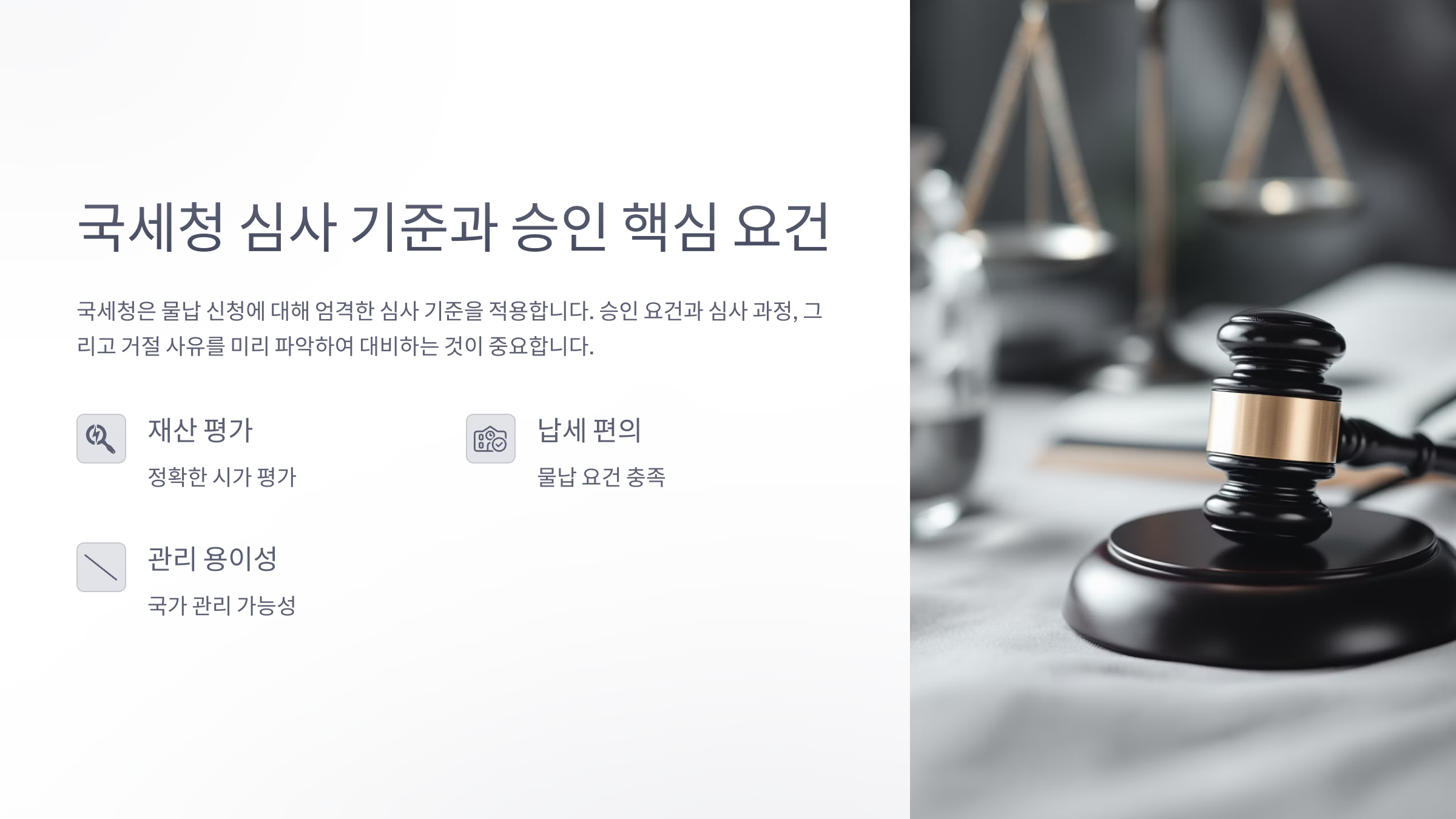 물납 신청을 했다면 이제 국세청의 심사를 받아야 해요. 이 단계는 ‘실제로 이 자산을 세금 대신 받을 만한 가치가 있는지’ 판단하는 과정이에요. 조건만 맞는다고 자동 승인되는 게 아니라, 꽤 까다로운 검토를 거친답니다.