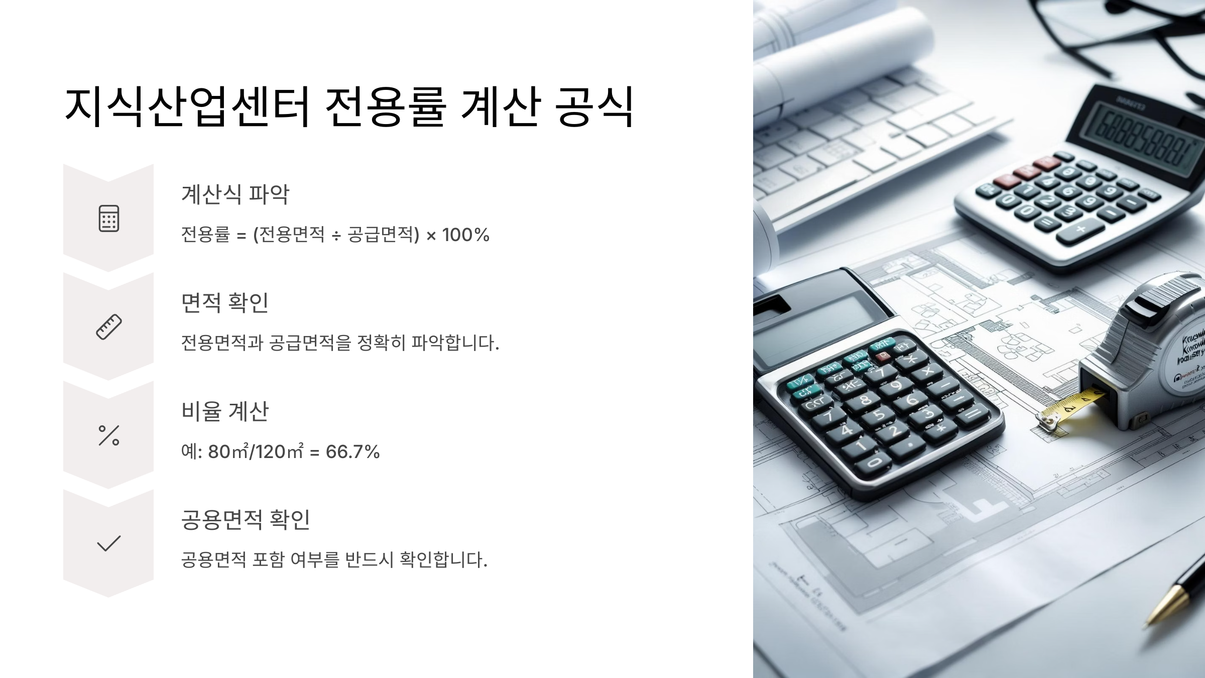 지식산업센터 투자나 입주를 고민할 때 가장 많이 듣는 말 중 하나가 바로 ‘전용률’이에요. 그런데 이 전용률이 뭔지, 어떻게 계산되는 건지 정확히 아는 분들은 생각보다 적더라고요.