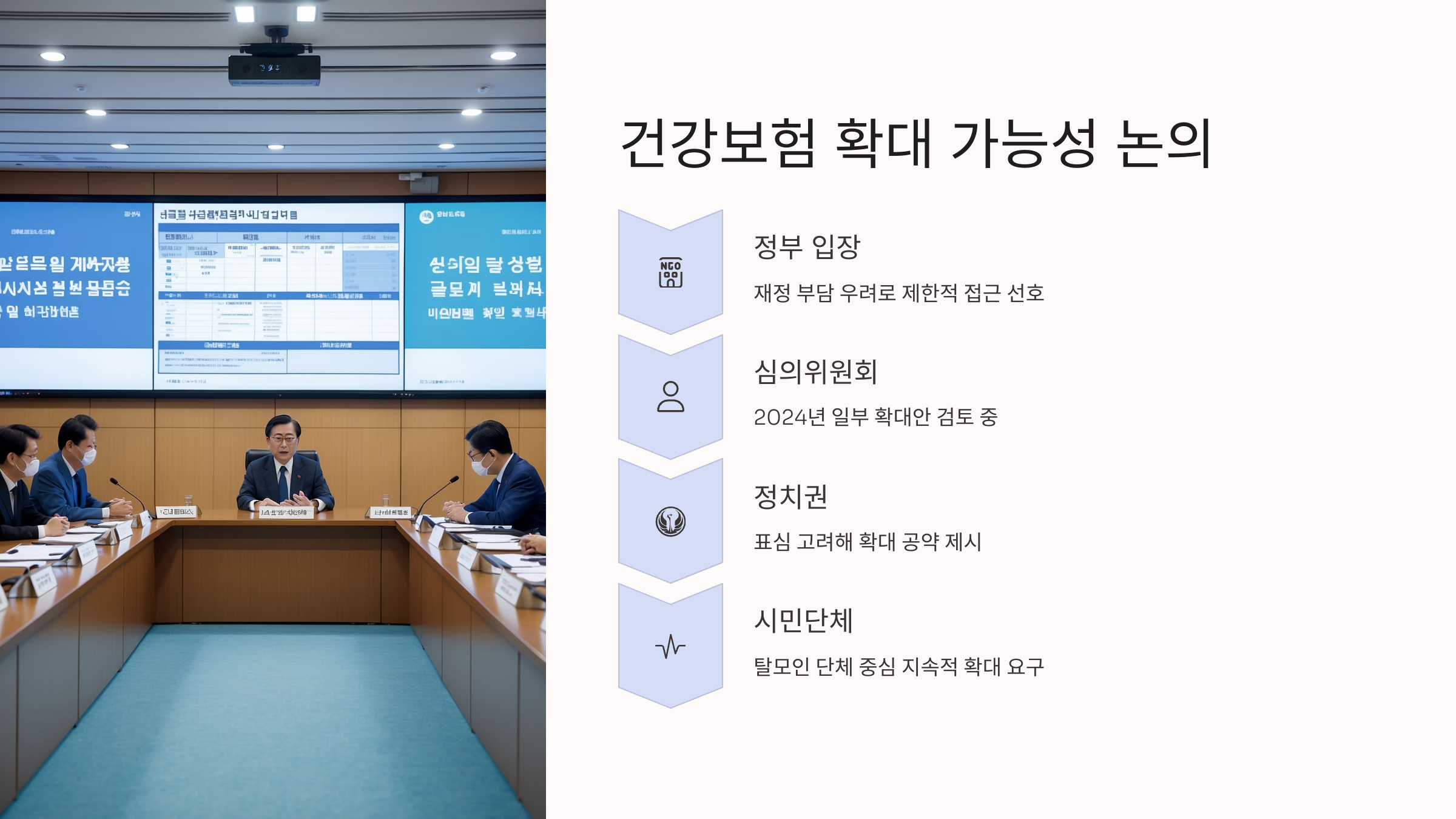 신 건강과도 연결되는 중요한 문제로 받아들여지고 있죠. 이에 따라 건강보험을 적용하자는 국민 청원이나 정치권 제안도 꾸준히 제기되고 있어요.