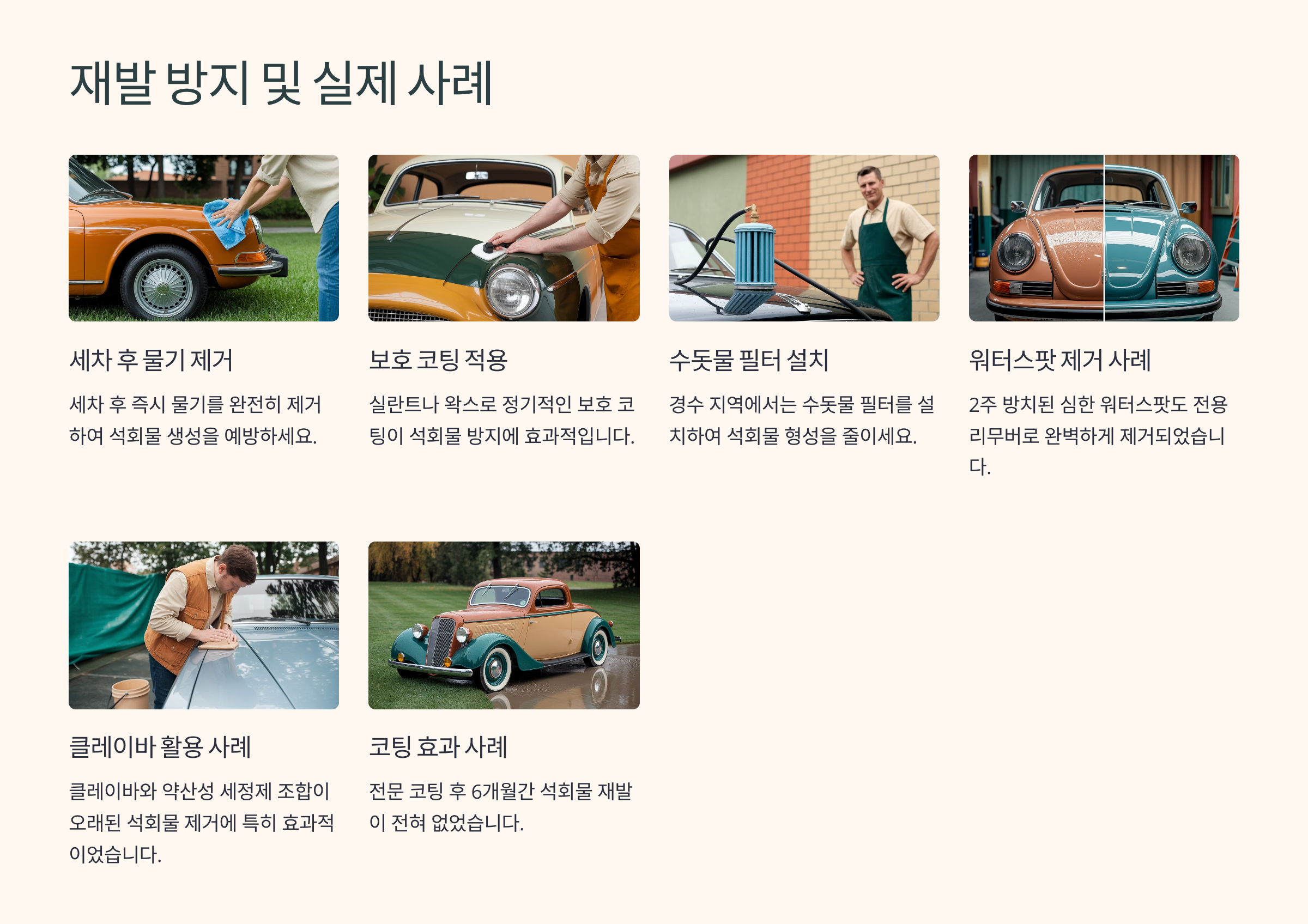 조금만 신경 쓰면 석회물 문제는 훨씬 줄일 수 있어요. 자동차를 소중히 아낀다면 예방 관리가 정답이에요!