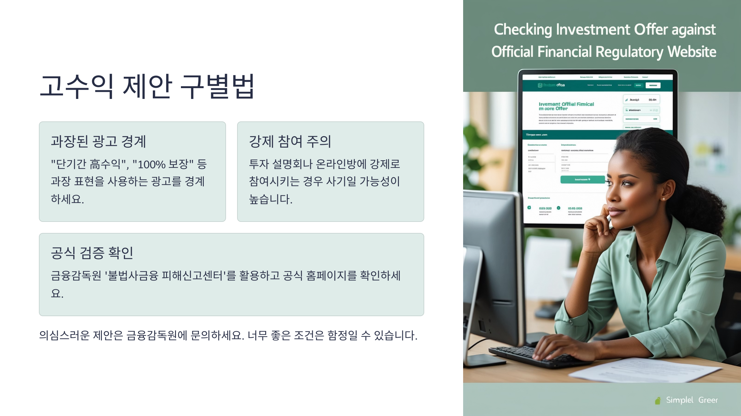 | 금감원 등록 | 있음 (파인에서 확인 가능) | 없음 또는 허위 |
