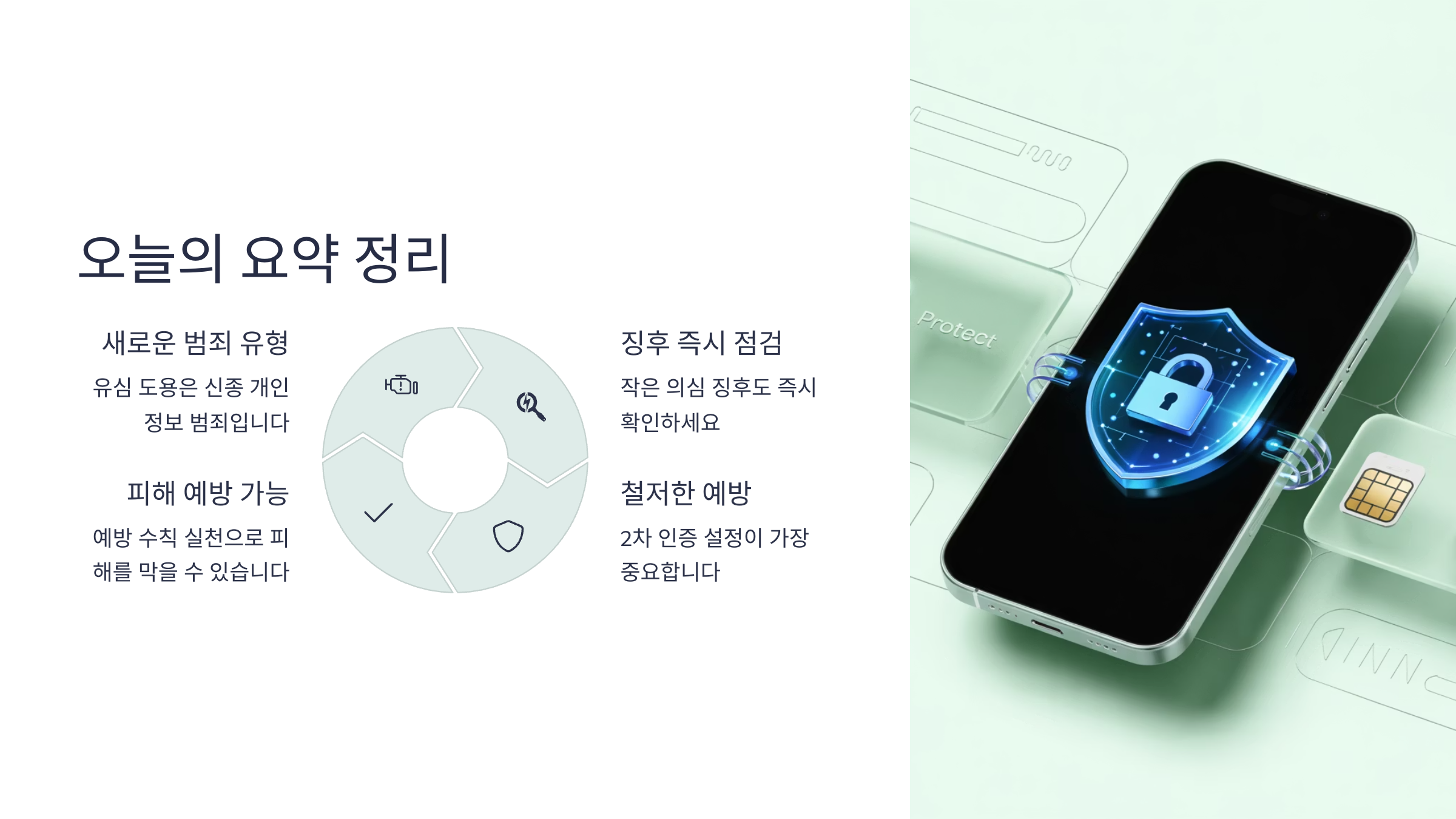 마지막으로, 통신사 2단계 인증, 유심 잠금, 개인정보 관리 같은 예방 방법까지 꼼꼼히 체크해봤어요. 스스로 방어벽을 튼튼히 쌓는 게 제일 중요하답니다. 😎