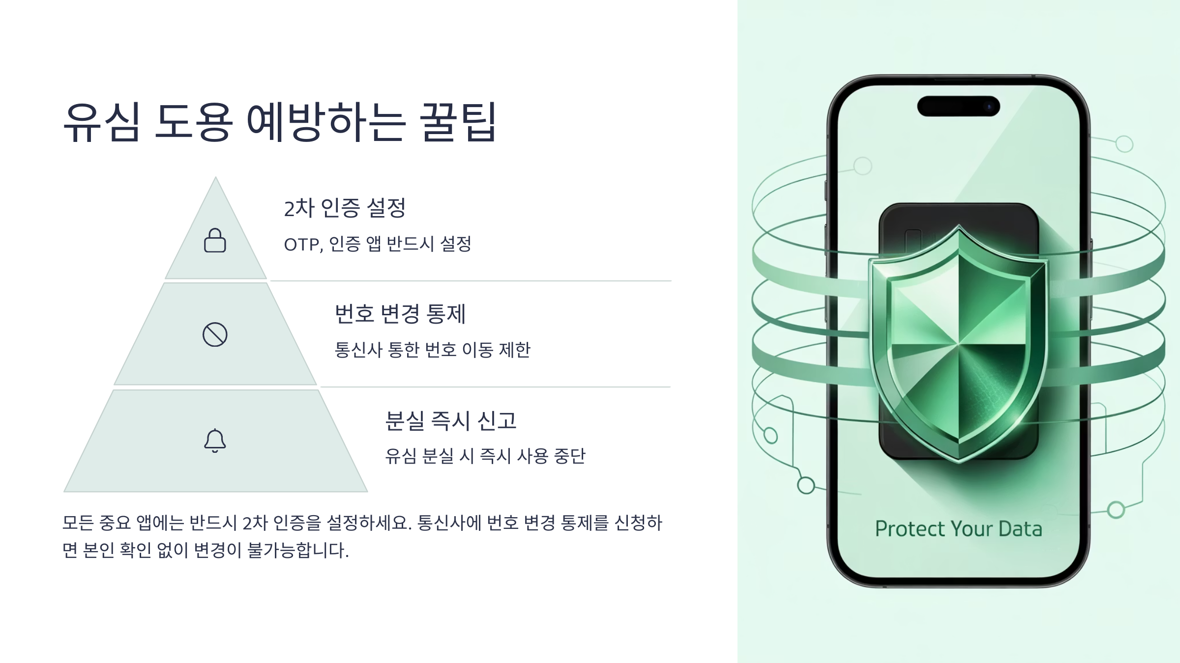유심 도용은 미리 대비하면 충분히 막을 수 있어요. 제일 중요한 건, 통신사 계정에 2단계 인증을 걸어놓는 거예요. 인증번호 하나만으로 유심 재발급을 막을 수 있거든요.