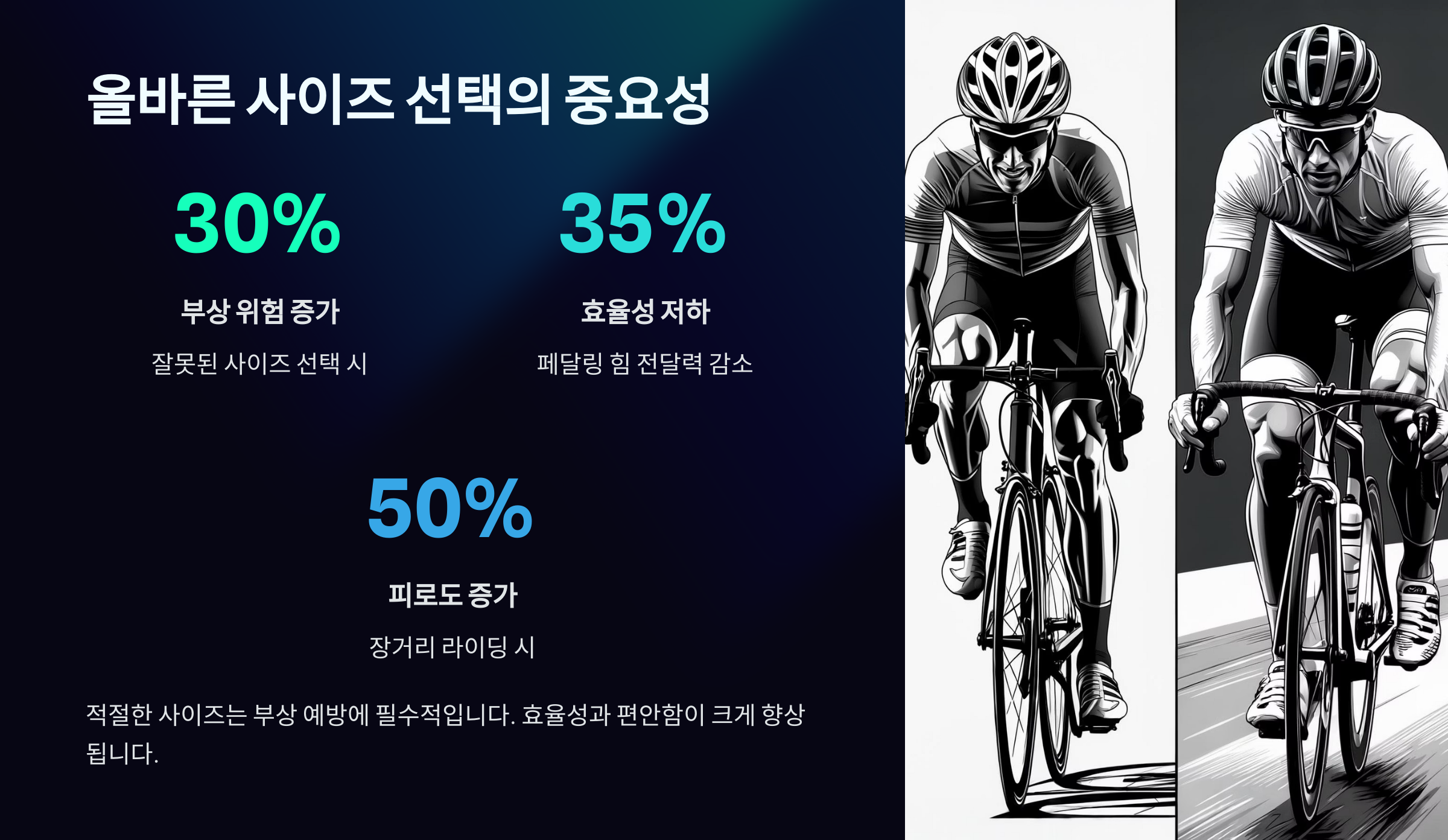 사이즈를 잘못 고르면 어떤 일이 생길까요? 바로 주행 내내 불편함을 느끼게 돼요. 어깨가 뻐근하거나, 허리가 아프거나, 심하면 무릎 통증까지 올 수 있어요. 🥴
