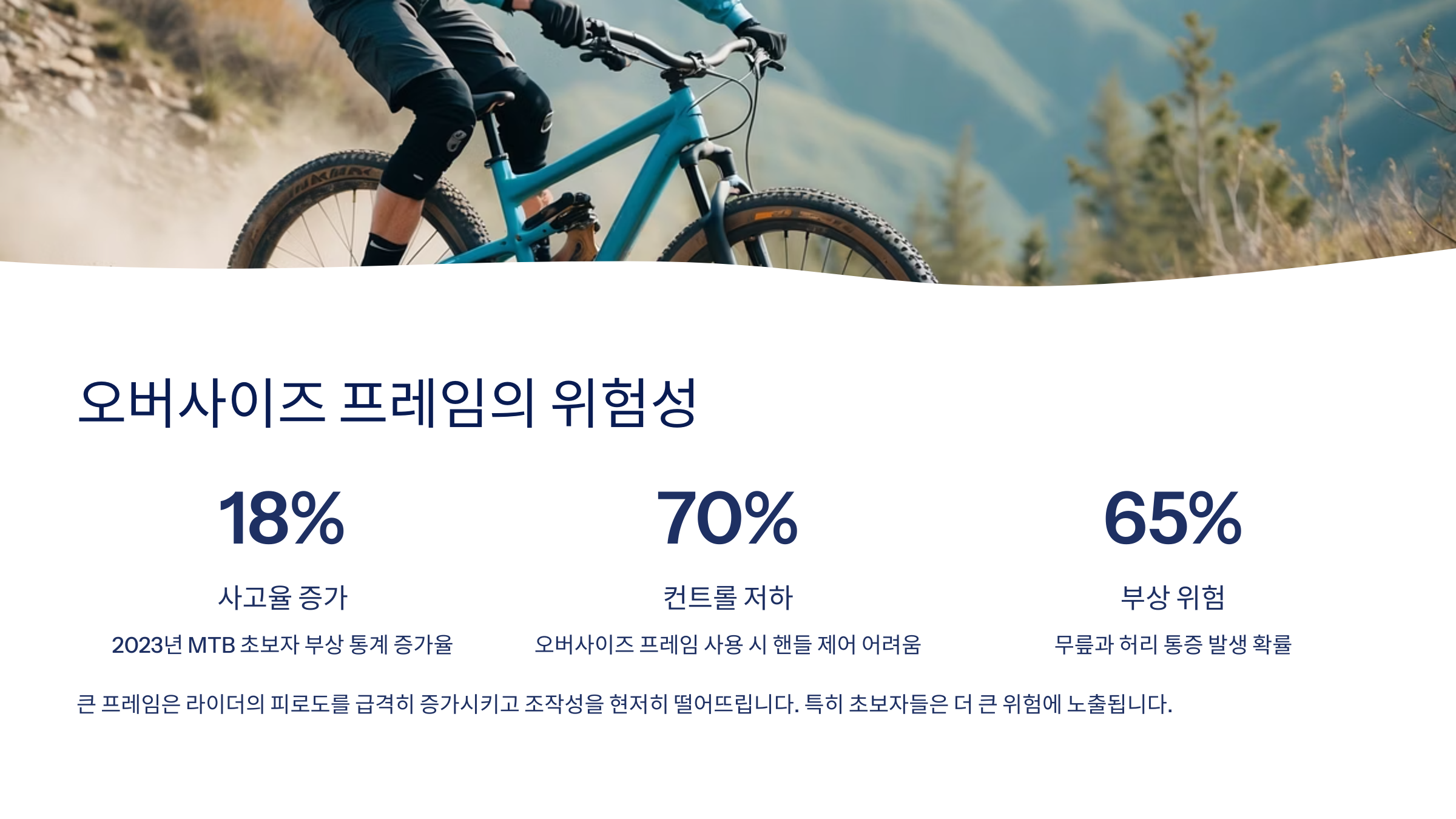 🏞️ 산을 달리고 험한 길을 넘는 MTB(산악자전거)는 튼튼함과 자유로움이 매력이죠! 하지만 MTB도 사이즈가 맞아야 진짜 재미를 느낄 수 있어요. 너무 크거나 작으면 몸에 무리가 오고, 실력 발휘도 어렵답니다. 😵💫