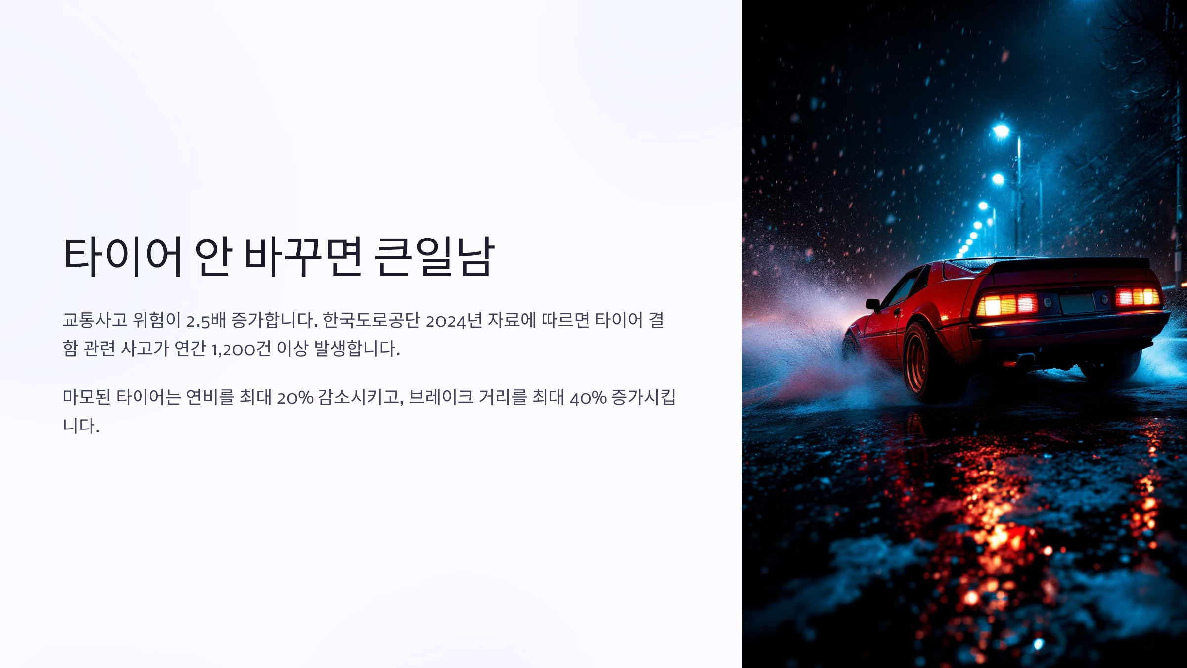 타이어는 자동차에서 유일하게 도로와 맞닿는 부품이에요. 그렇기 때문에 단순한 고무 덩어리처럼 보여도 안전과 직결되는 핵심 요소랍니다. 그런데 많은 운전자들이 타이어 상태를 신경 쓰지 않다가, 사고로 이어지는 경우가 정말 많아요.