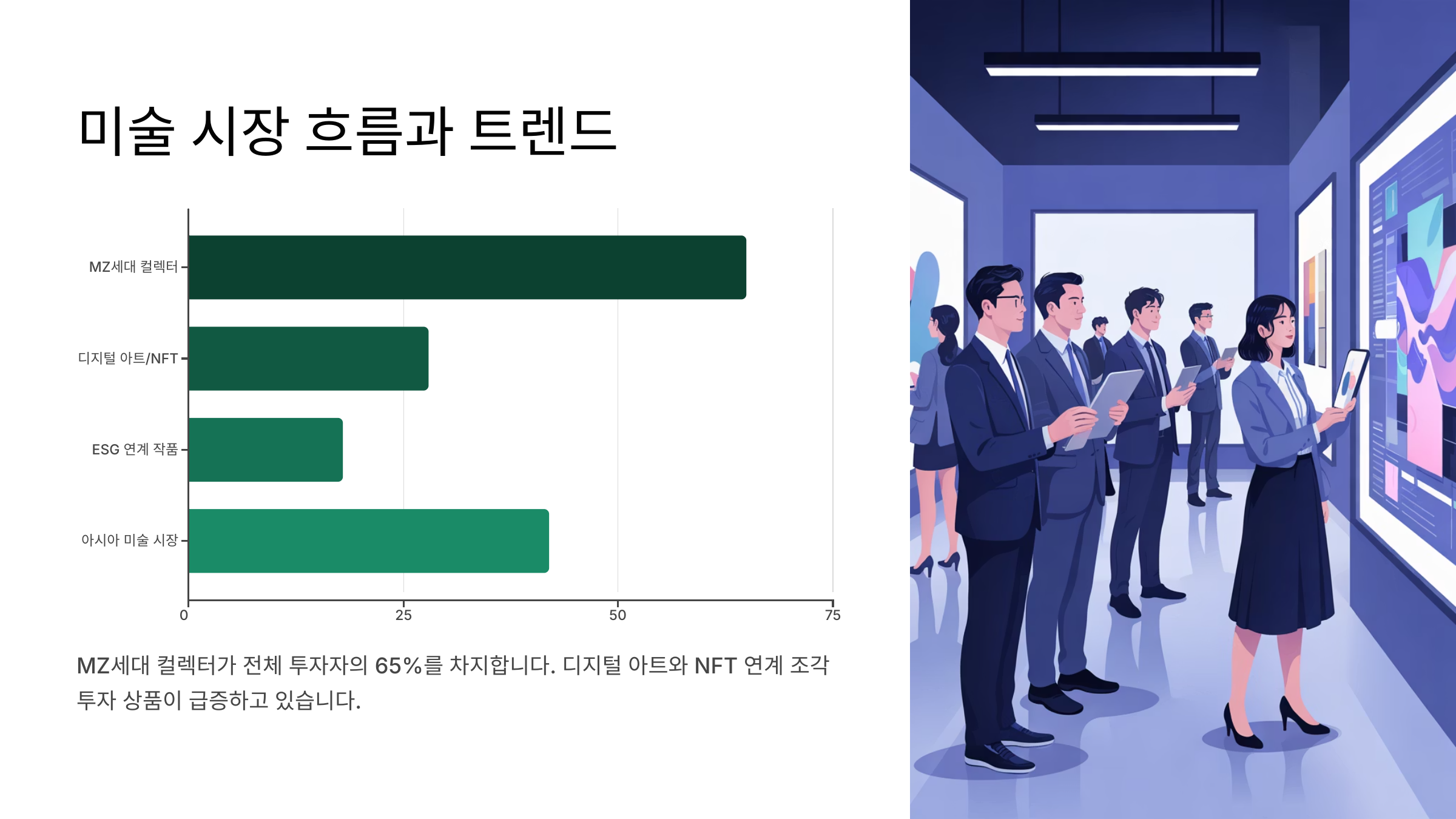 | 스토리 중심 소비 | 작가의 메시지와 사회성 중시 | 예술+의미 결합 투자 선호 |