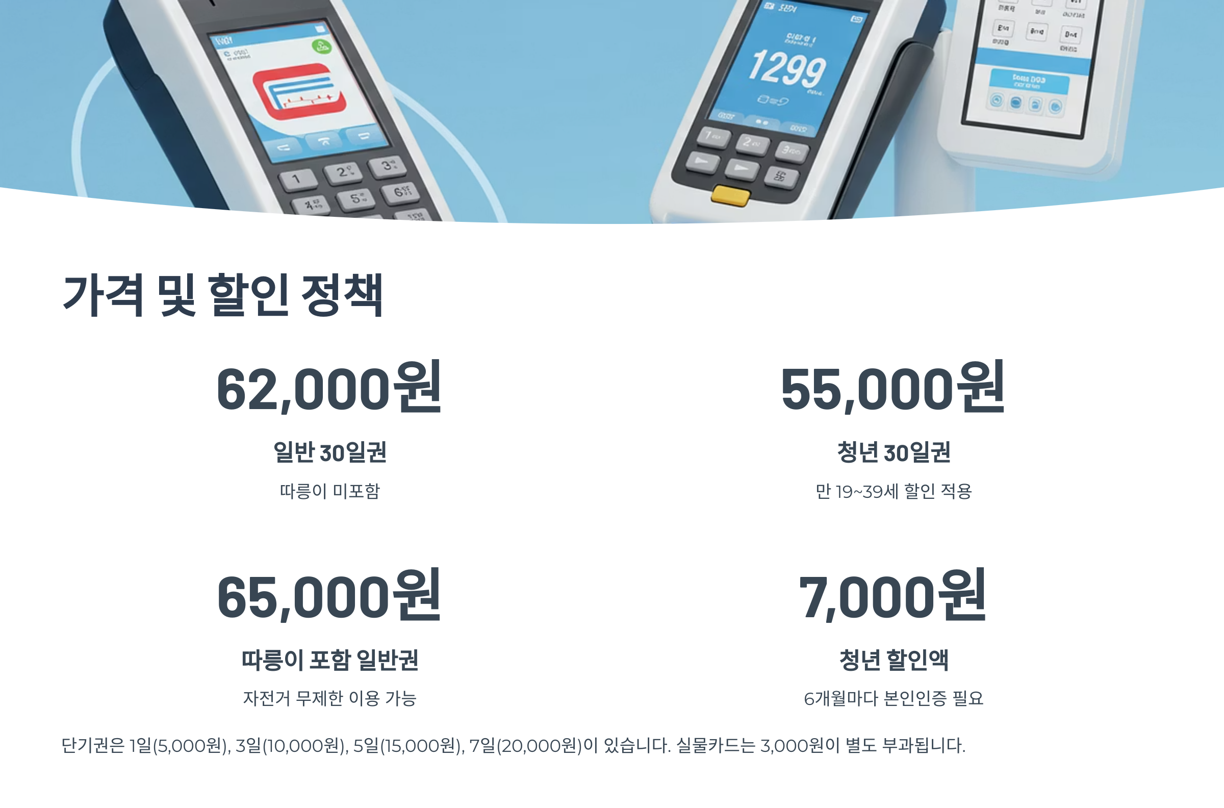 모바일이든 실물이든, 나에게 맞는 방식으로 발급해서 똑똑하게 활용하면 돼요! 다음은 가격 및 환불 정책을 살펴볼게요. 💸