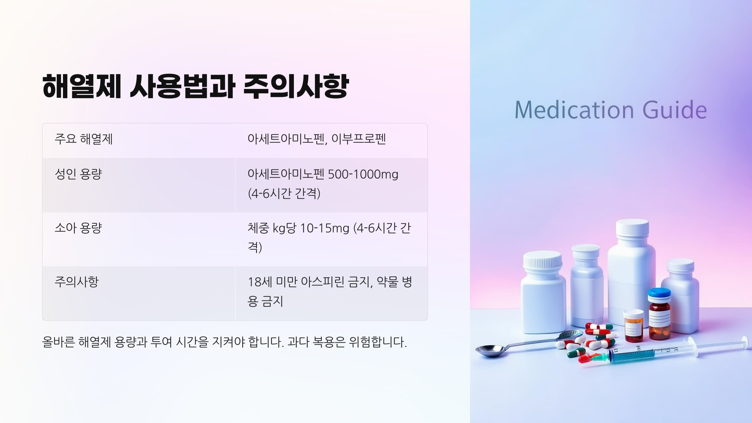 해열제를 복용하더라도 열이 계속 39도 이상 유지되거나, 복용 후 3일 이상 증상이 낫지 않으면 반드시 병원에 가야 해요. 해열제는 치료제가 아니라 증상 완화제이기 때문에 원인을 찾는 게 더 중요하답니다!