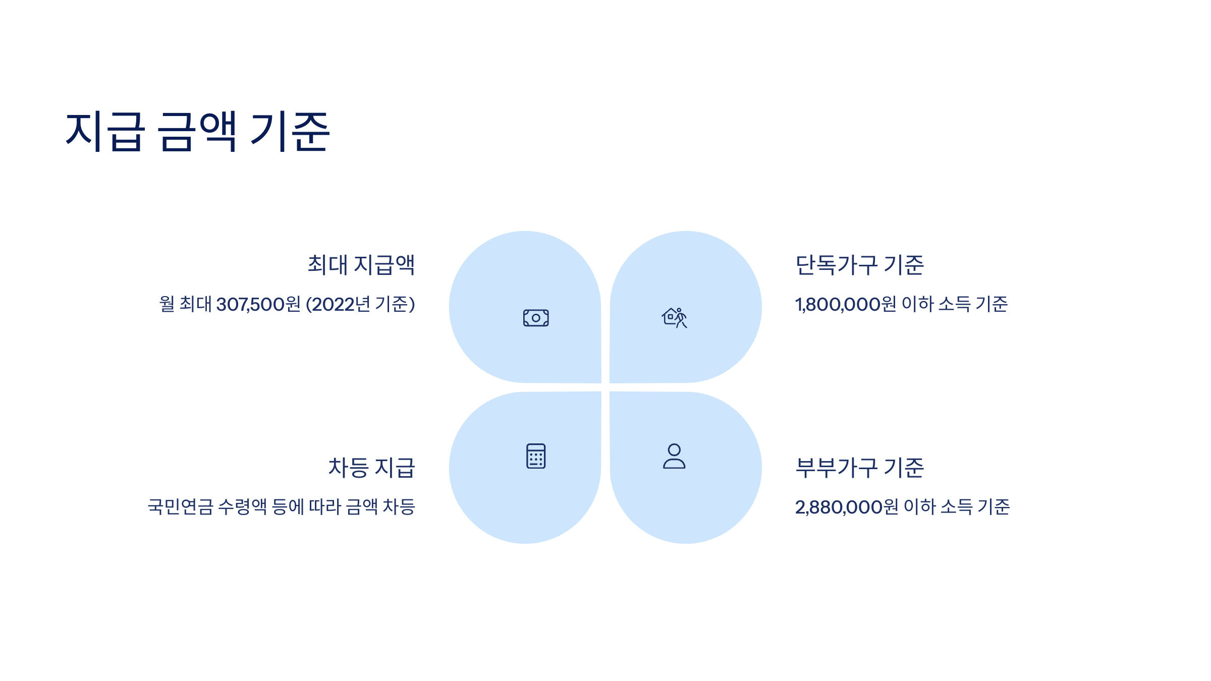 지급 대상은 만 65세 이상 + 가구별 소득인정액 기준 충족인 경우에 해당돼요. 일반 단독가구는 소득인정액 약 202만 원 이하, 부부는 323만 원 이하 기준(2025년 기준)을 넘지 않아야 해요.