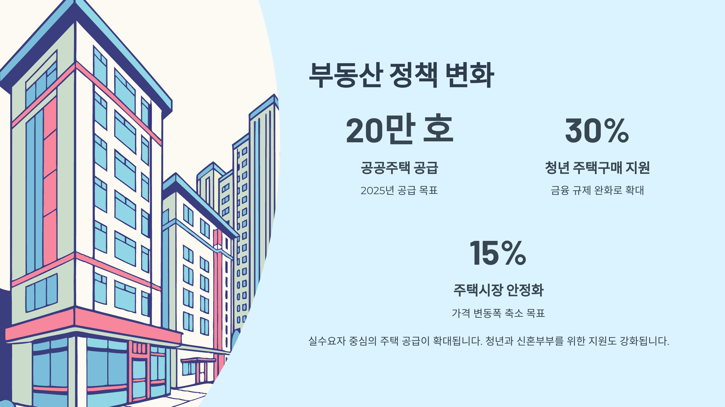 부동산 정책의 기조는 실수요자 중심이고, 전반적으로 주거 불안을 해소하는 쪽으로 개편되고 있어요. 주택을 ‘사는 공간’으로 인식하는 정책이 많아졌다는 게 느껴져요. 🏡