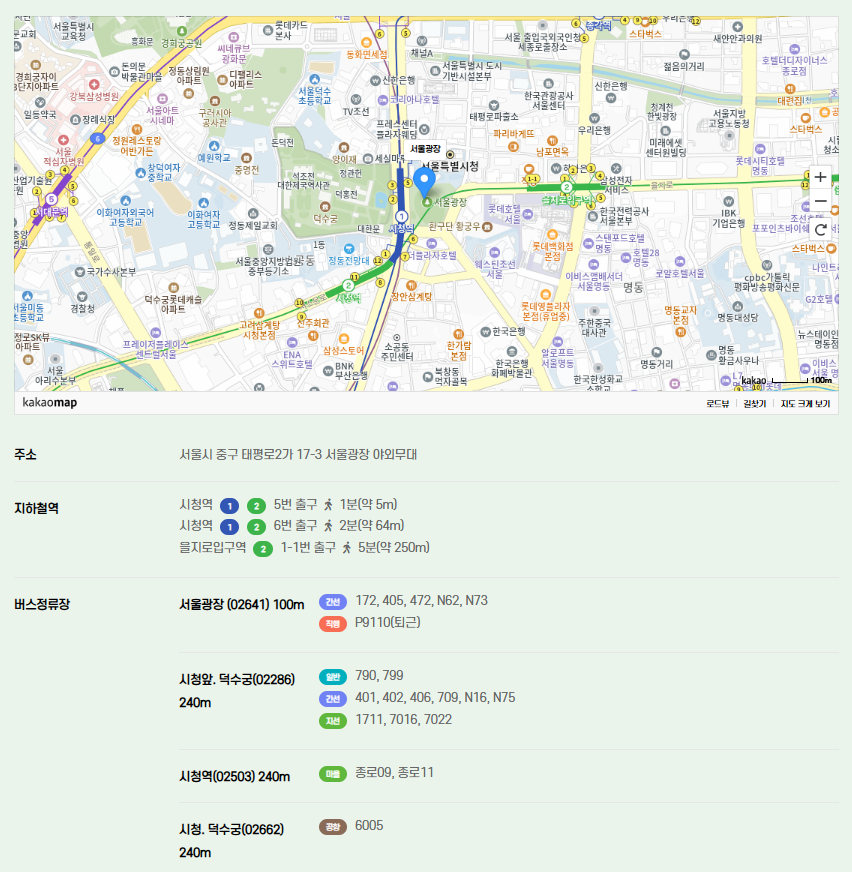 | 지하철 | 1·2호선 시청역 도보 1~2분 |