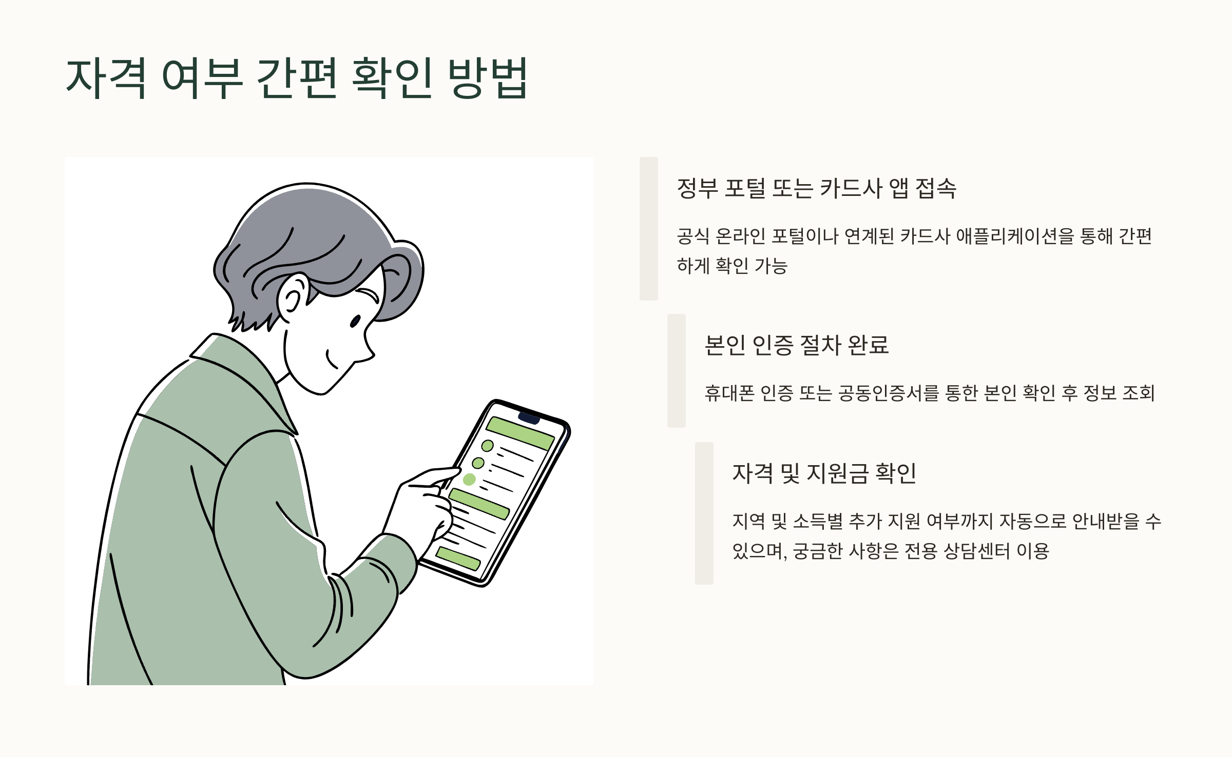 이제 ‘내가 자격이 되는지 간편하게 확인할 수 있는 방법’만 남았어요! 다음 섹션에서 알려드릴게요 😊