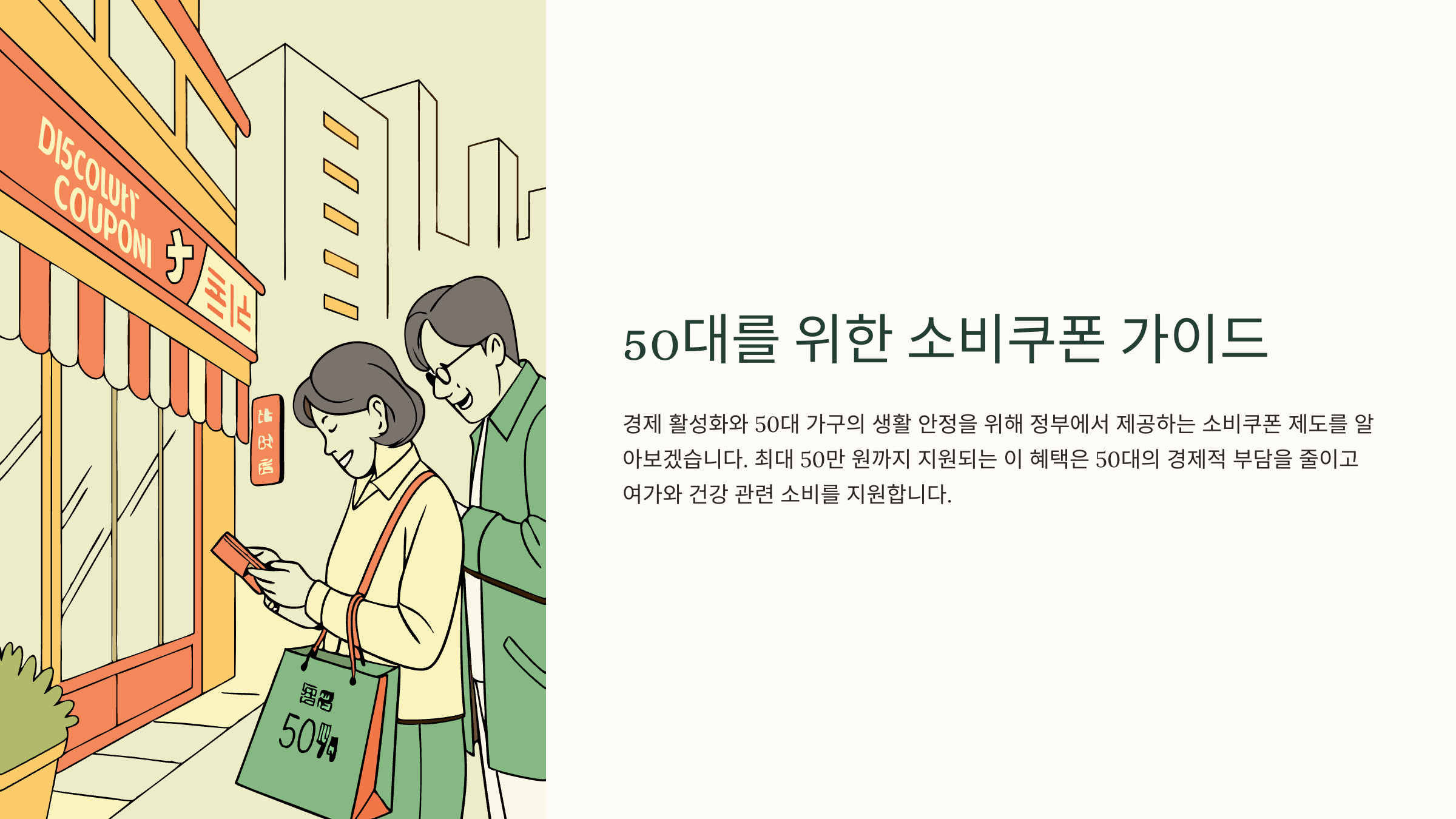 특히 가장으로서 가정의 경제를 책임지고 있는 50대라면, 쿠폰 혜택이 삶의 질에 꽤 큰 영향을 줄 수 있어요. 지금부터 50대가 받을 수 있는 소비쿠폰 종류와 신청 조건을 하나하나 아주 쉽게 풀어드릴게요!📌