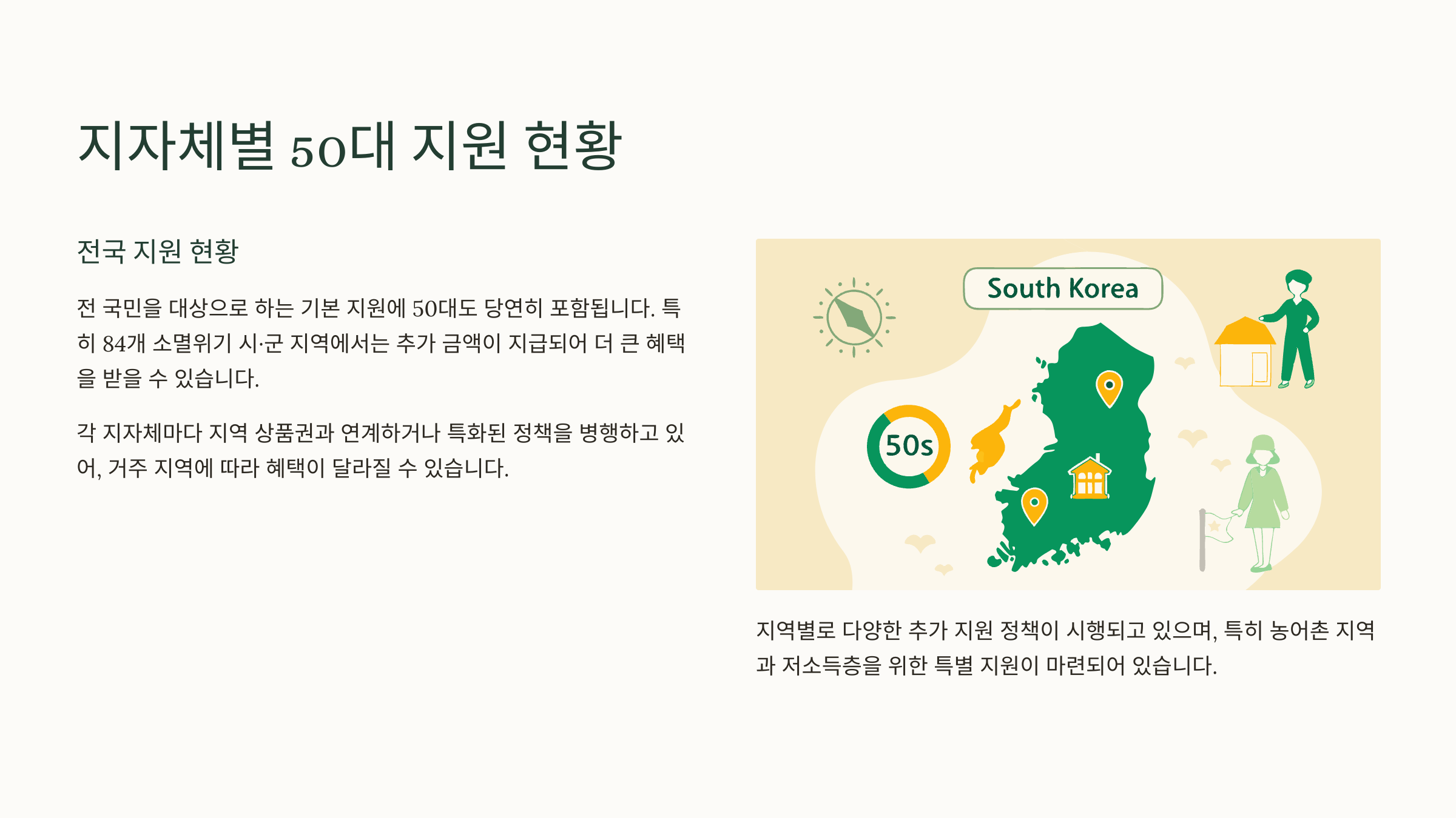 이제 ‘내가 사는 지역에서도 받을 수 있는지’가 궁금해지셨죠? 다음 섹션에서는 지자체별 50대 대상 지원 여부를 안내할게요!