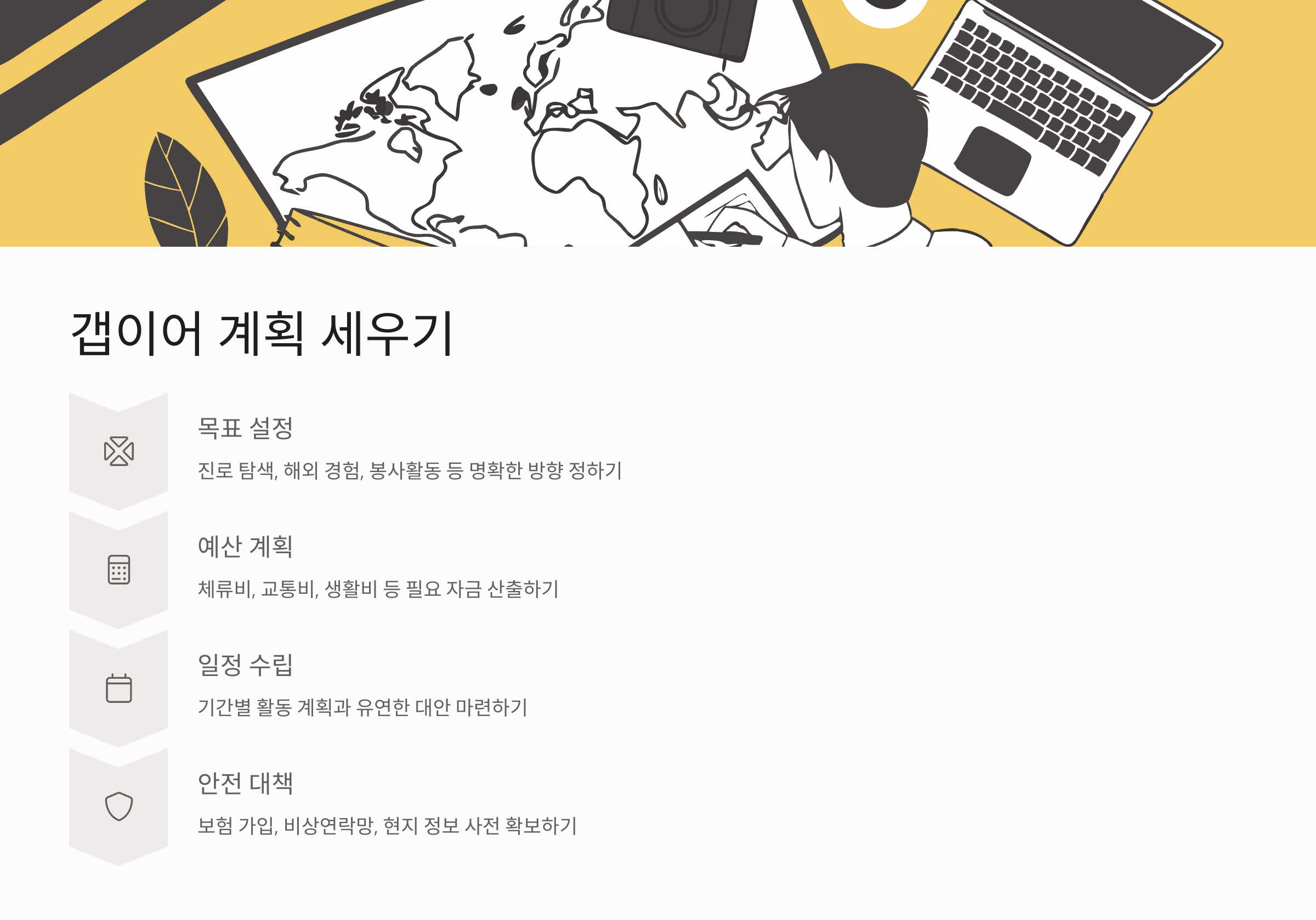 체계적인 준비가 있다면 갭이어는 인생 최고의 시간이 될 수 있어요. 준비 없이 시작하면 후회할 수도 있지만, 계획이 있다면 그 어떤 학기보다 값진 배움의 시간이 될 거예요! 💪