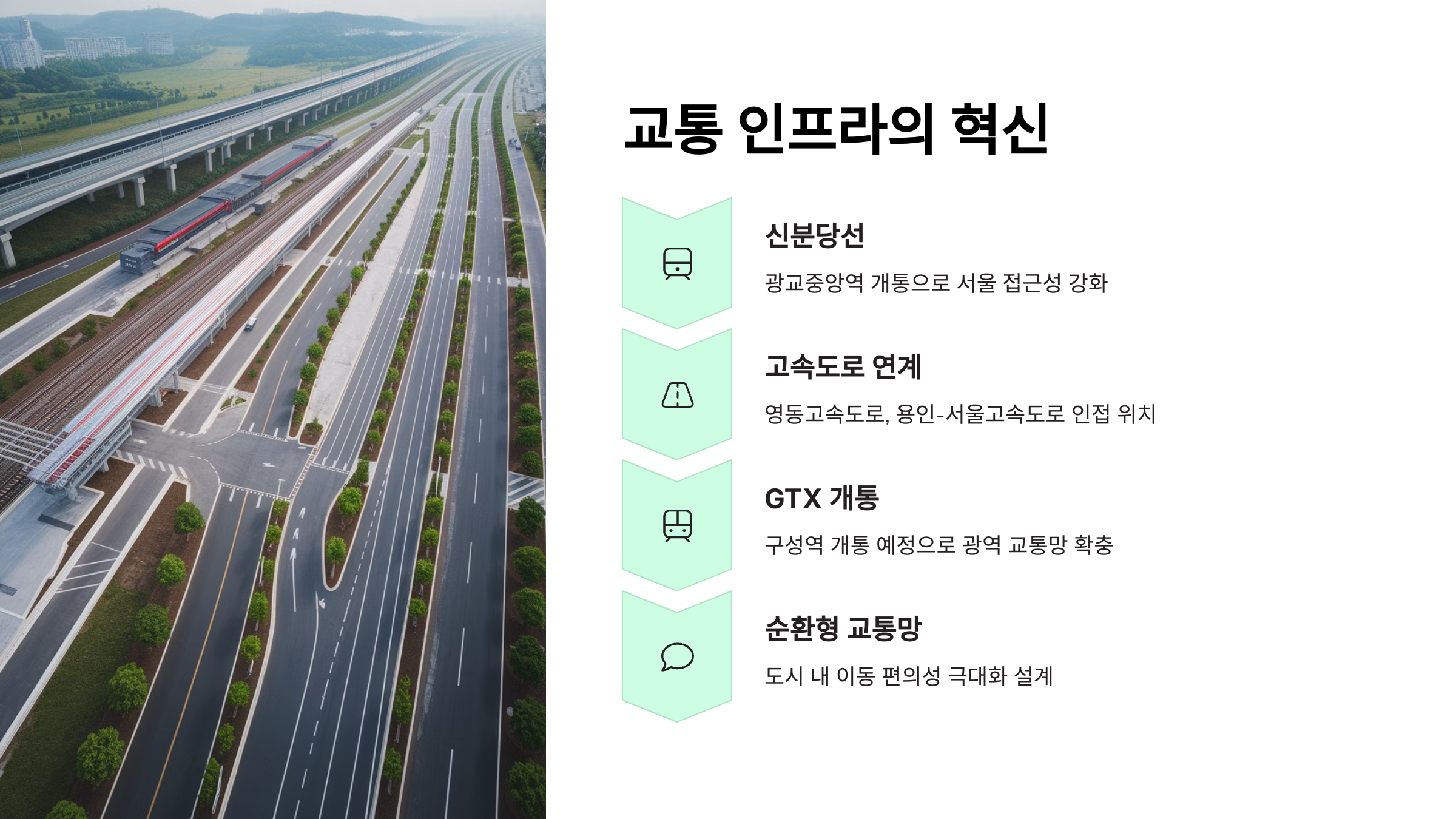 2025년 현재도 GTX(수도권 광역급행철도) 노선 추가 계획이 검토되고 있어요. 광교가 앞으로도 수도권 중심 교통 허브로 발전할 가능성이 크다는 의미예요. 서울과 대등하거나 그 이상으로도 도시 경쟁력을 갖출 수 있는 바탕이 된답니다.