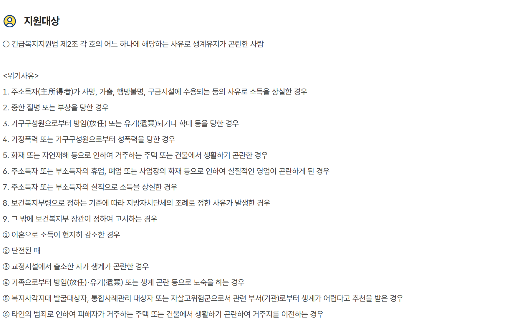 긴급복지 생계지원은 특정 조건을 충족하는 가구에게 지급돼요. 주요 대상은 다음과 같아요: