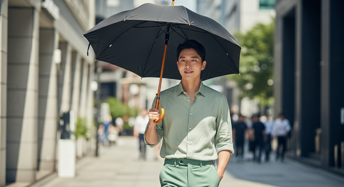 셋째는 패션 요소예요. 최근엔 블랙, 네이비, 카키처럼 남성적이고 세련된 디자인의 양산도 많아졌어요. 패션 브랜드들도 남성용 라인을 속속 출시하면서 일상 아이템으로 스며들고 있어요.