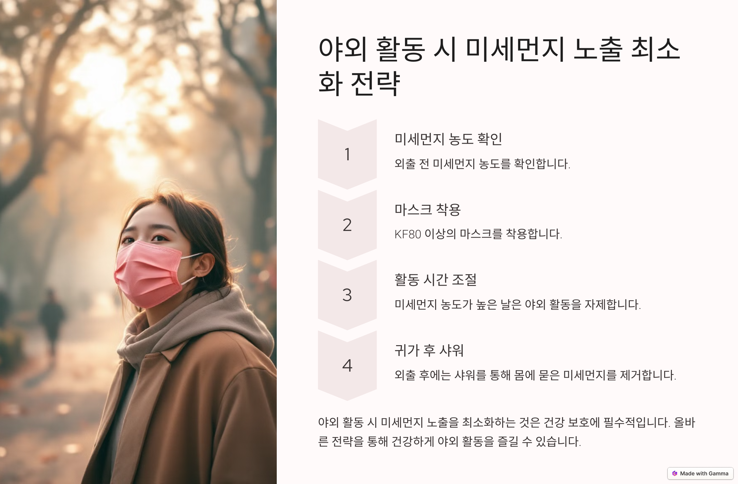2. 미세먼지 많은 날엔 실외활동 최소화: 공기질이 나쁜 날에는 운동이나 외출을 자제하는 것이 좋아요.