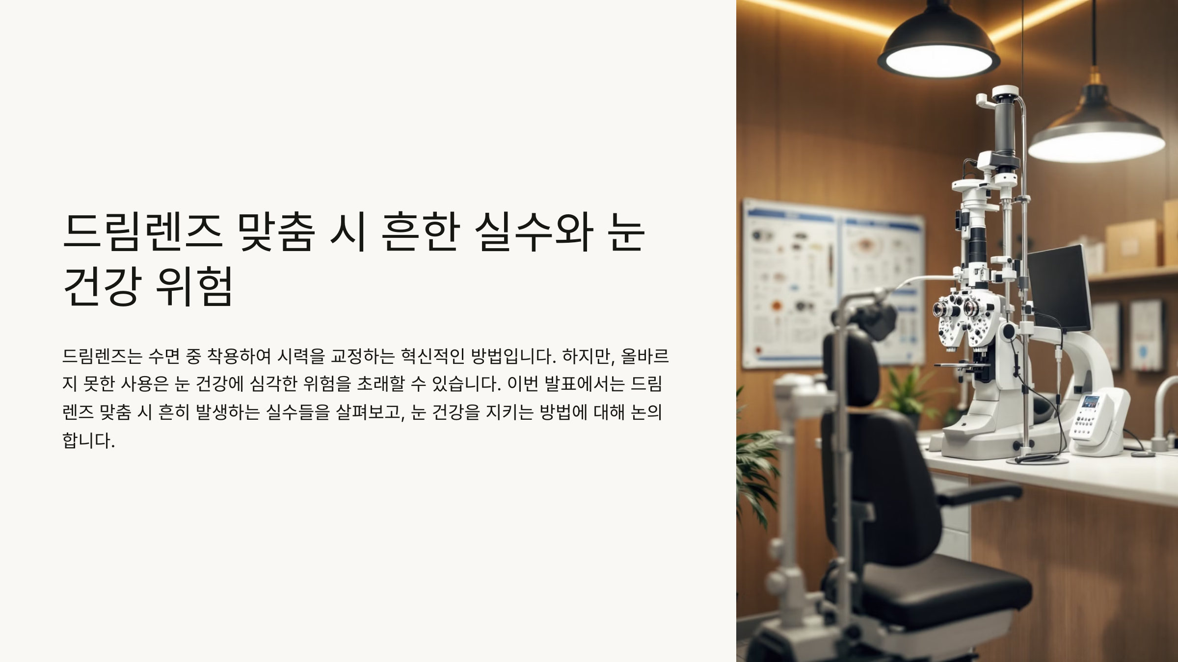 👀 드림렌즈는 시력 교정을 돕는 혁신적인 방법이지만, 처음 맞출 때 많은 사람들이 실수를 하곤 해요. 특히, 관리 방법을 제대로 숙지하지 않거나 기대치가 너무 높아 실망하는 경우도 많아요.