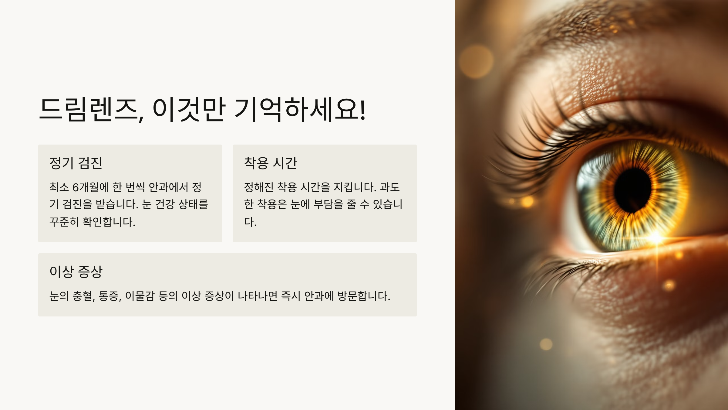 아이 혼자서도 쉽게 착용할 수 있도록 올바른 방법을 익히는 것이 중요해요. 본문에서는 드림렌즈 착용을 위한 준비 과정부터, 안전하고 편하게 착용하는 팁까지 자세히 알려줄게요! 👀