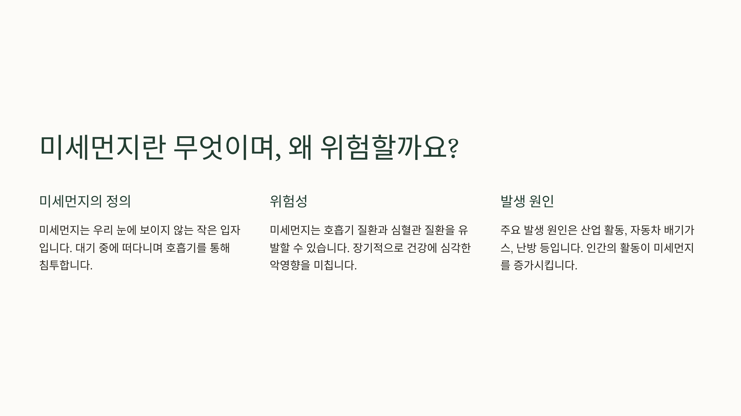 이 글에서는 미세먼지가 무엇인지, 건강에 미치는 영향은 어떤 것들이 있는지, 그리고 실내와 실외에서 건강을 지키는 방법을 알아볼 거예요. 또한 미세먼지에 좋은 음식과 마스크 착용법까지 자세히 알려드릴 테니 끝까지 읽어보세요! 😊