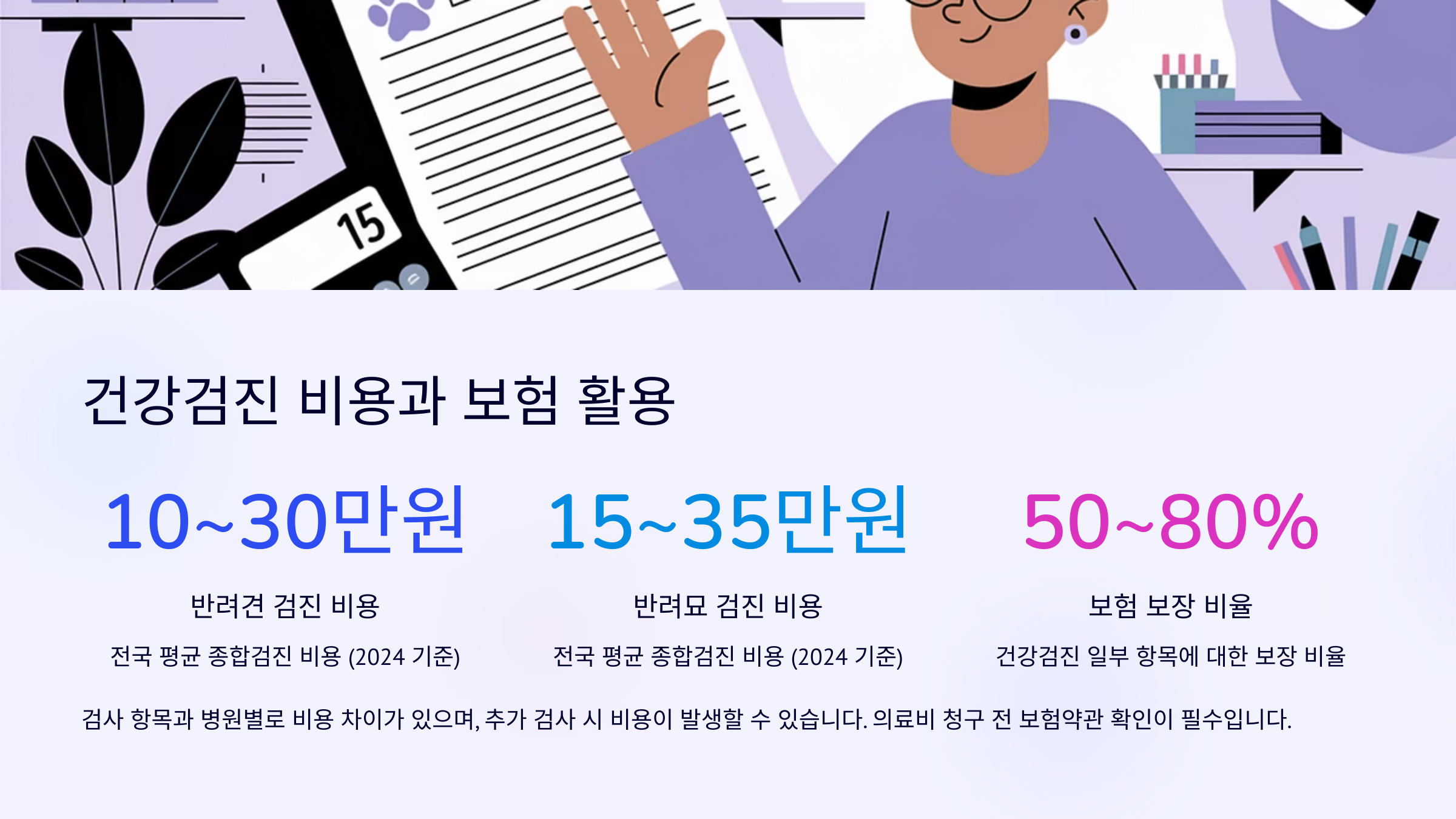 이제 다음은 **‘건강검진 비용과 보험 활용’** 실질적인 금액과 아끼는 팁까지 정리해드릴게요! 💸🐾