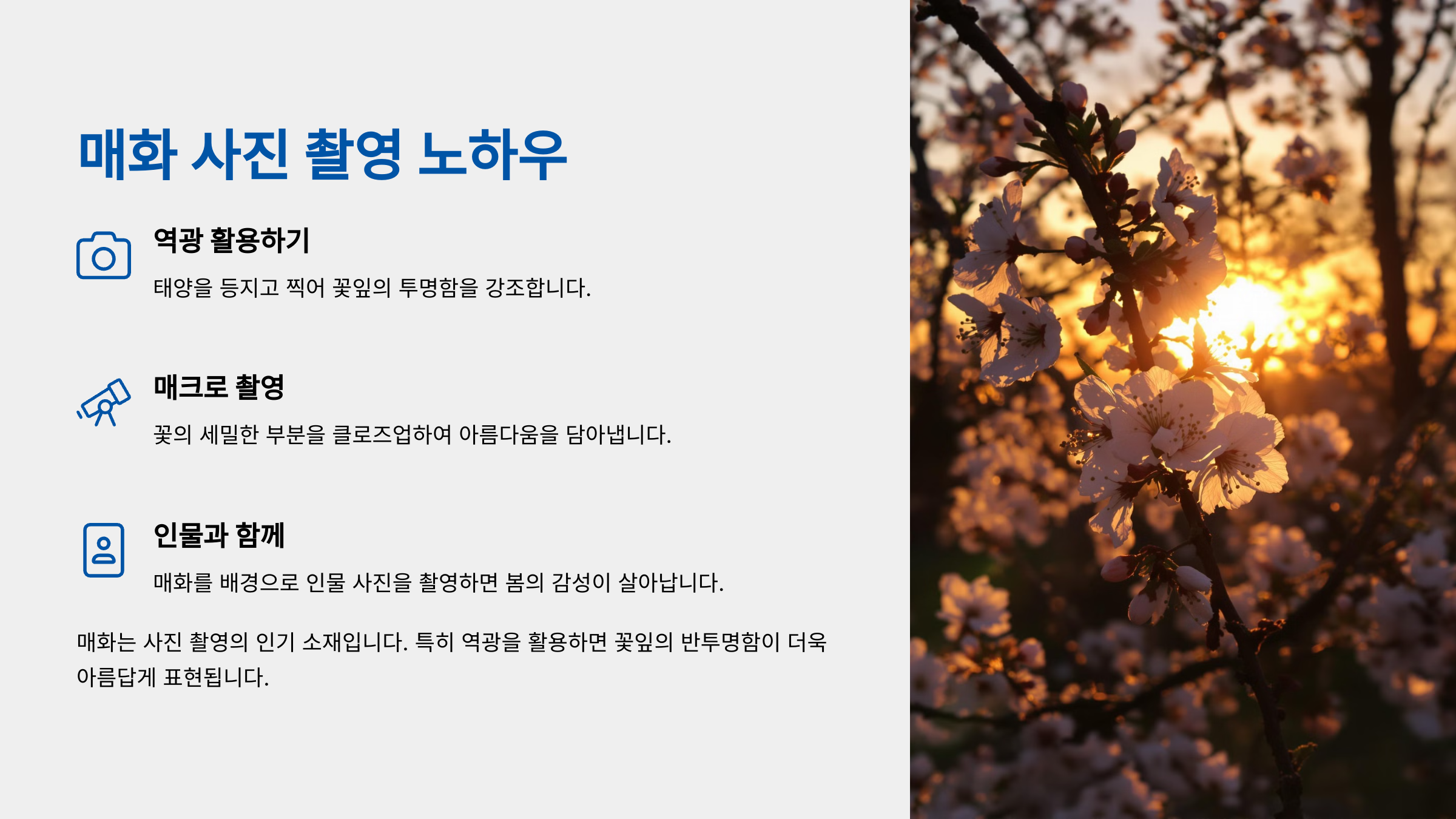 📸 매화 사진 촬영 꿀팁 정리표