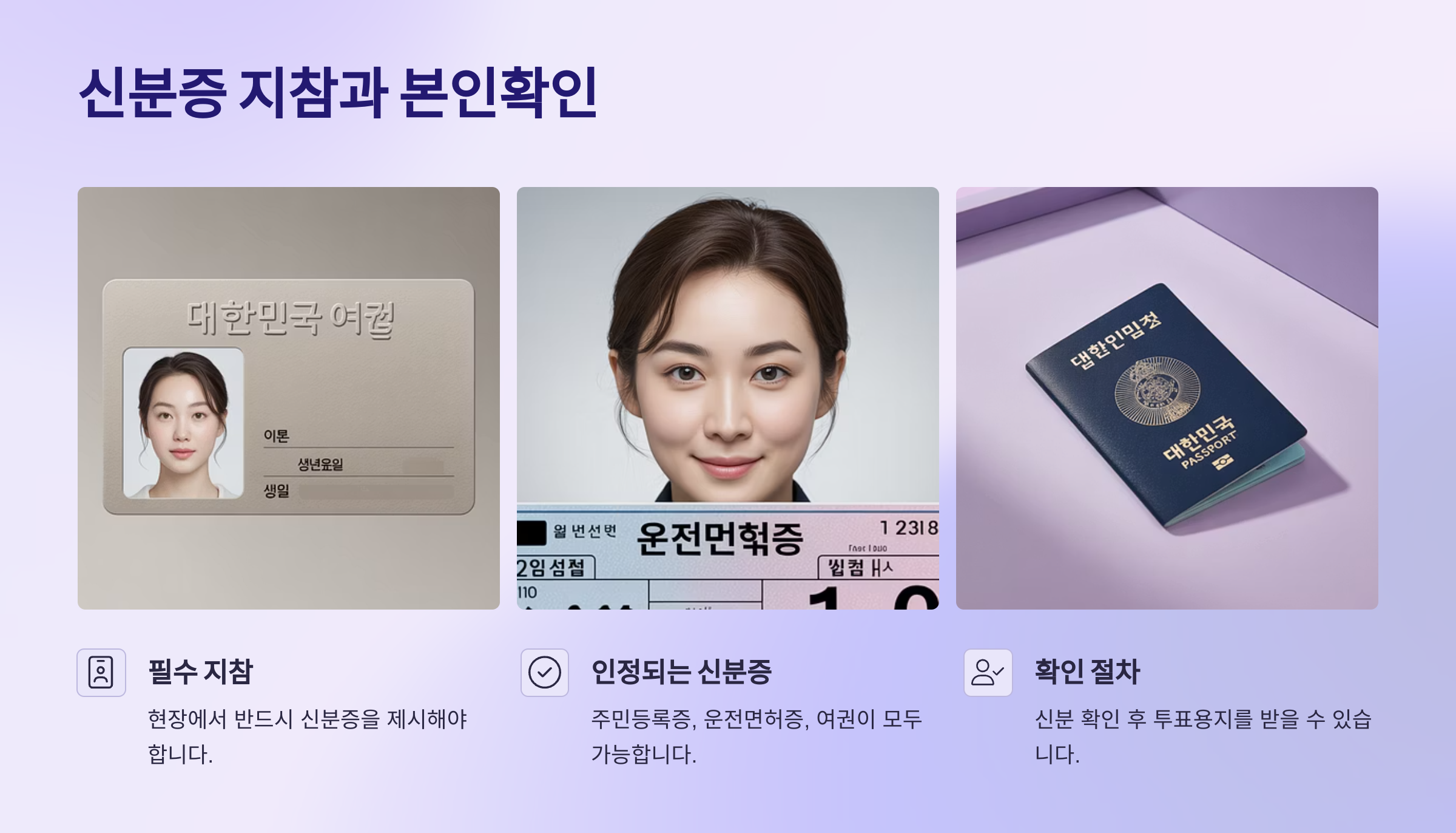 신분증이 없으면 투표가 불가능하므로, 투표 전 반드시 신분증을 챙기세요. 특히 모바일 신분증을 사용할 땐 배터리 상태까지 체크해두는 게 좋아요. 기기 오류나 인증 실패 시 투표가 지연될 수도 있답니다.