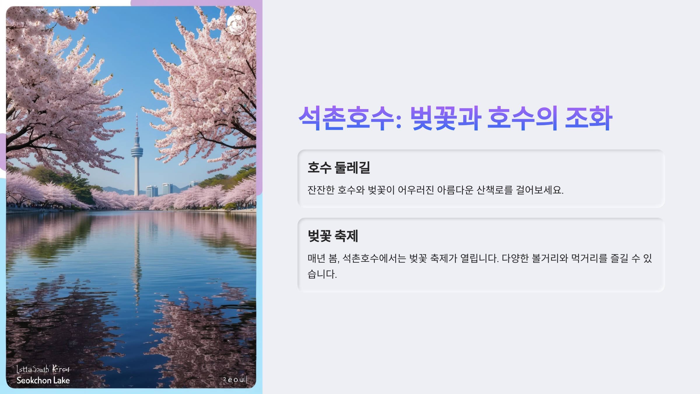 📅 추천 방문 시기: 4월 초~중순 📍 위치: 서울 송파구 석촌호수로 🚇 교통편: 지하철