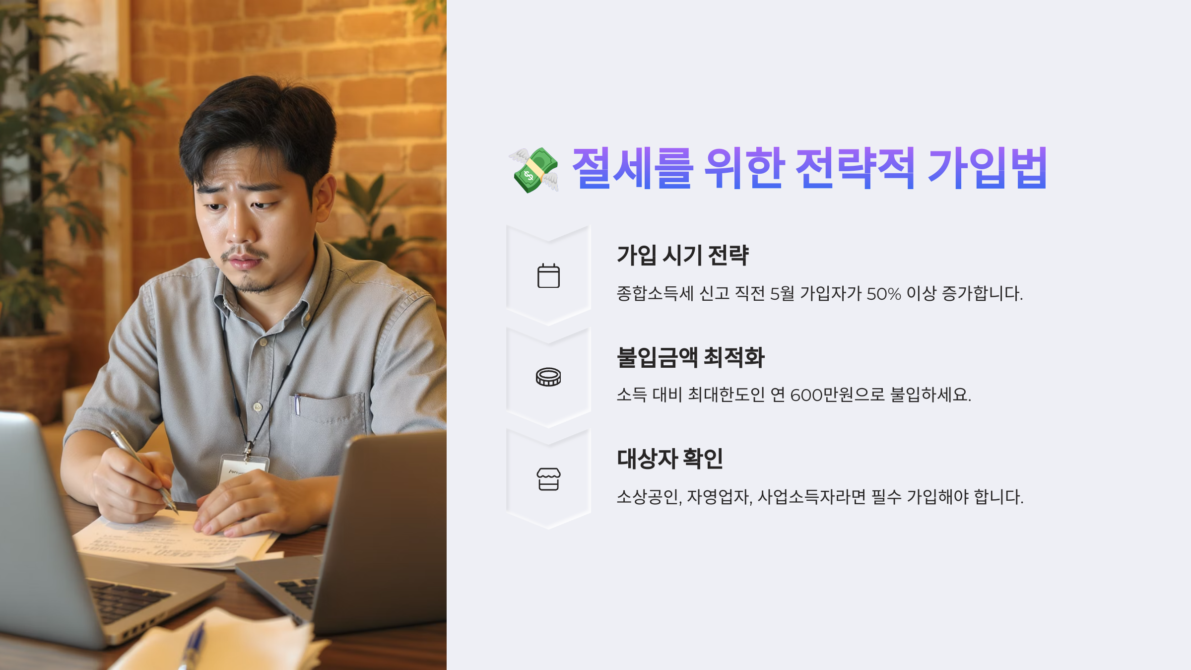 가입 시기 역시 중요해요. 연말 전에 가입해야 당해 연도 공제 대상으로 인정받기 때문에, 연초보다 연말이 되기 전 빠르게 가입하는 것이 좋아요.
