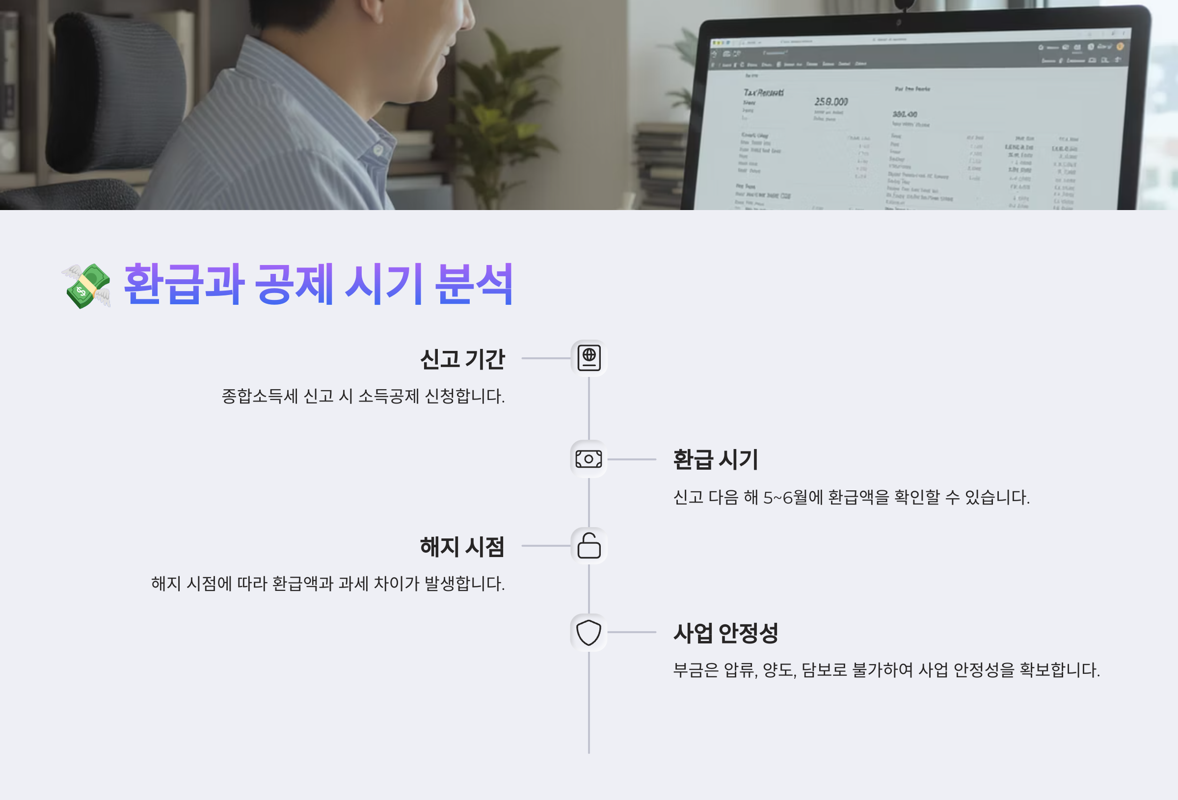 사업자는 납입금액 전액을 소득공제받을 수 있어서, 종합소득세를 줄이거나 환급받을 수 있는 구조로 되어 있어요. 이건 일반 직장인의 연말정산보다 훨씬 강력한 장점이에요.