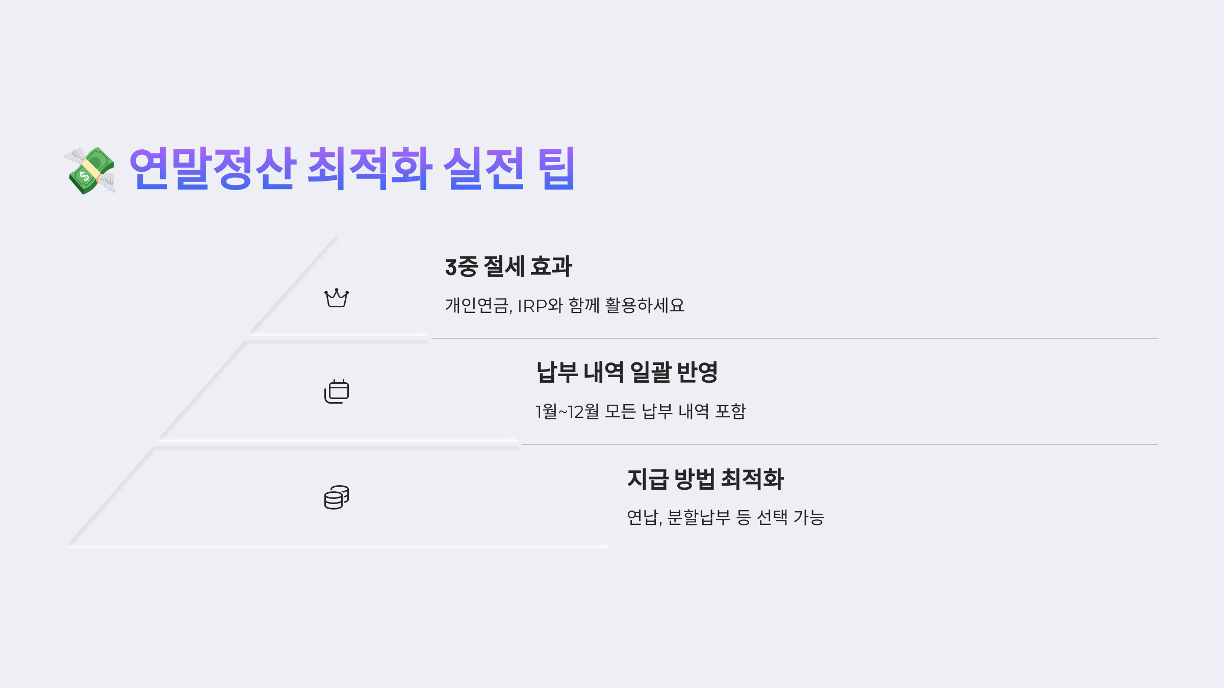 가장 중요한 건 납입 완료 시점이에요. 12월 31일 이전까지 이체 완료되어야 그 해 연말정산에 반영돼요. 지연되면 다음 해로 넘어가니까 주의하세요!