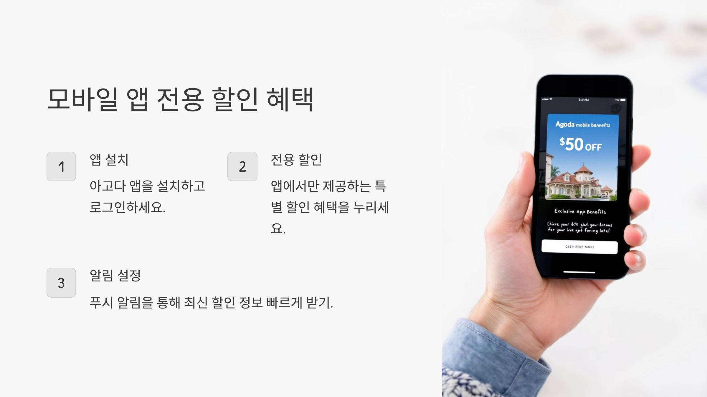 아고다 앱에서 예약하면 **추가 할인**을 받을 수 있어요! 📱