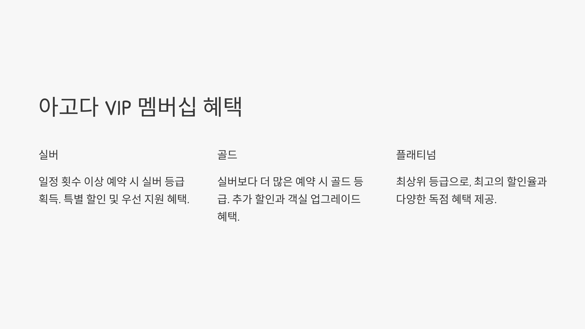 VIP 멤버십 등급이 높을수록 **더 많은 할인과 무료 혜택**을 받을 수 있어요! ✨