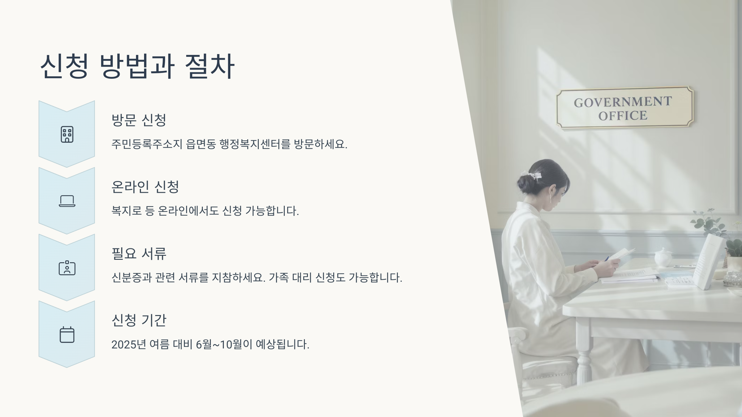 2025년 기준으로는 건강보험 자격 조회와 연계해 자동 심사도 가능하지만, 반드시 신청은 본인이 직접 해야 한답니다. 주민센터를 통해 신청 가능하고, 자세한 건 아래에서 설명할게요!
